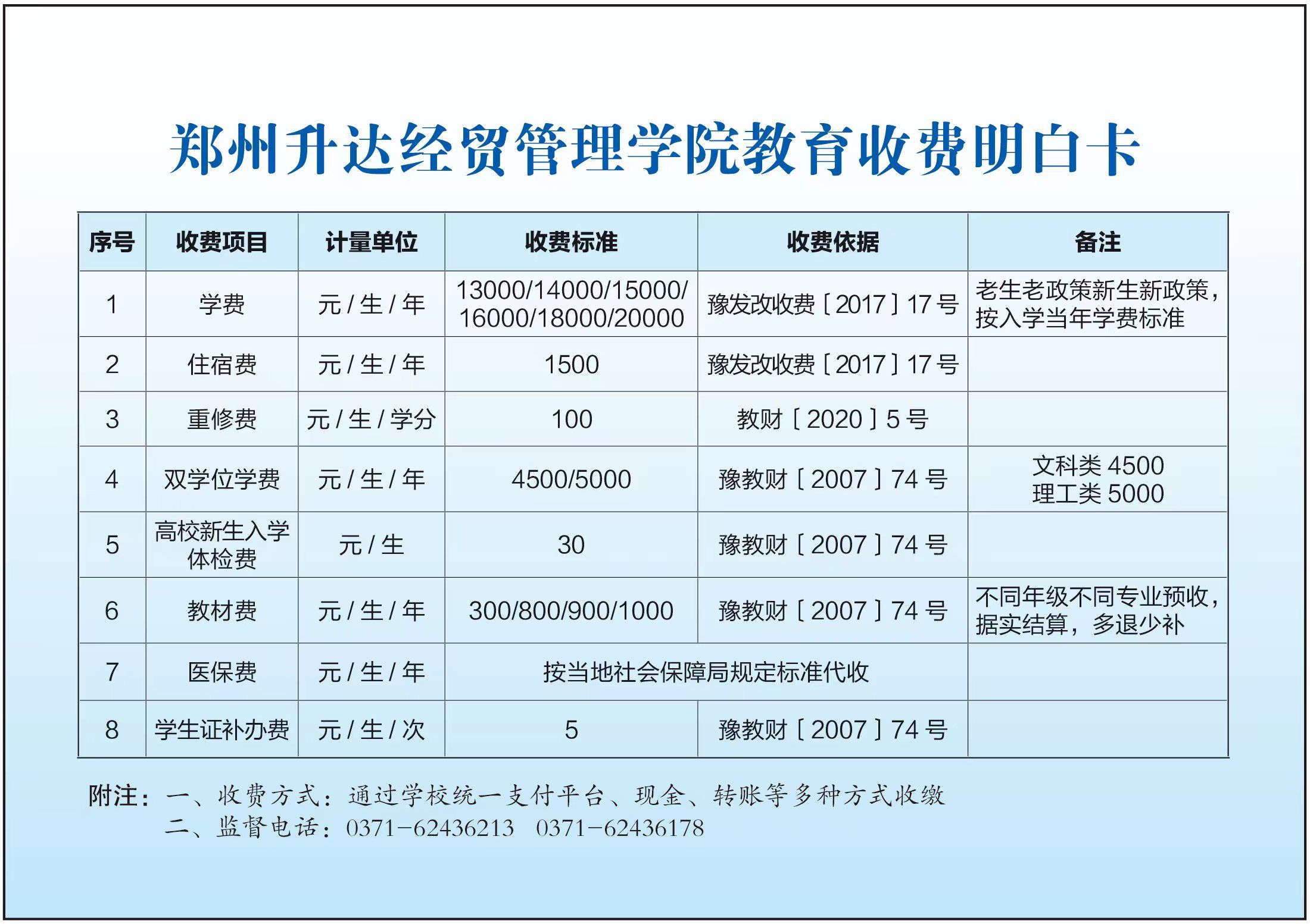上一条:郑州升达经贸管理学院教育收费明白卡(2025年) 下一条:郑州升达经贸管理学院2024学年注册费用明细表