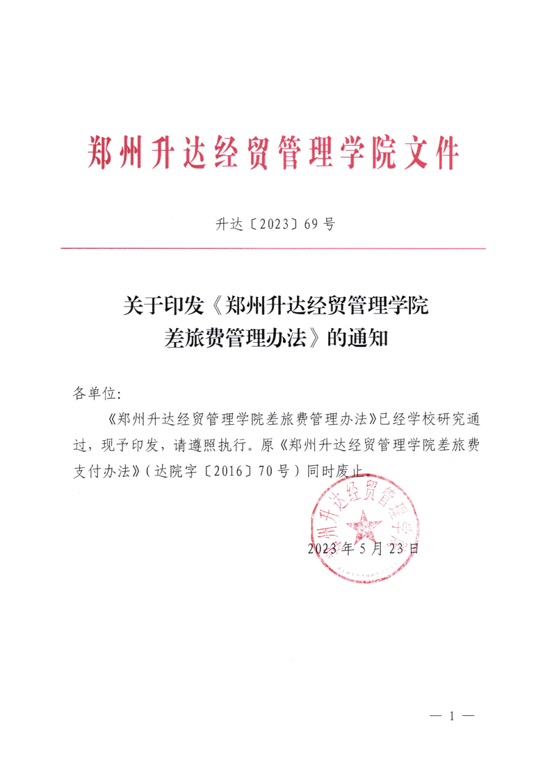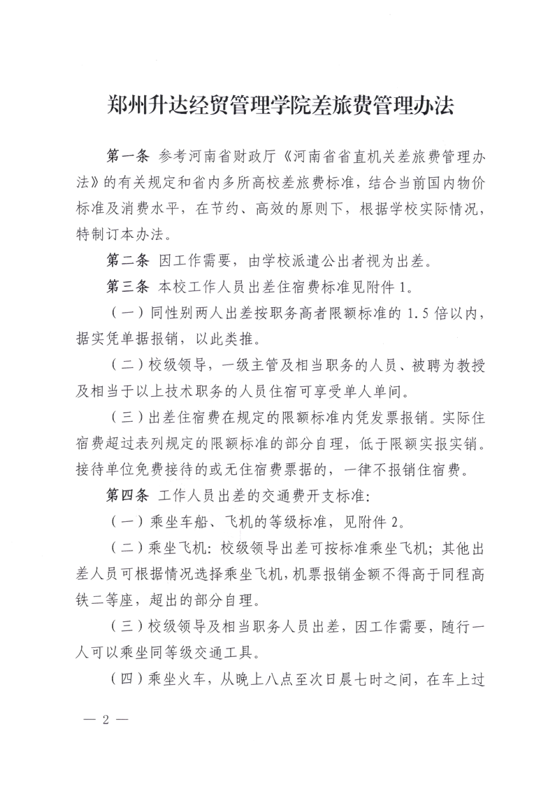 郑州升达经贸管理学院差旅费管理办法