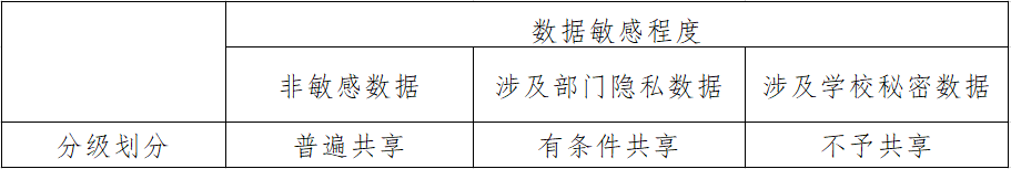 (一)业务系统的主管部门和信息化处共同确定业务数据分级,业务数据分级确定的粒度到表级别即可,并形成学校数据资源分级文档。