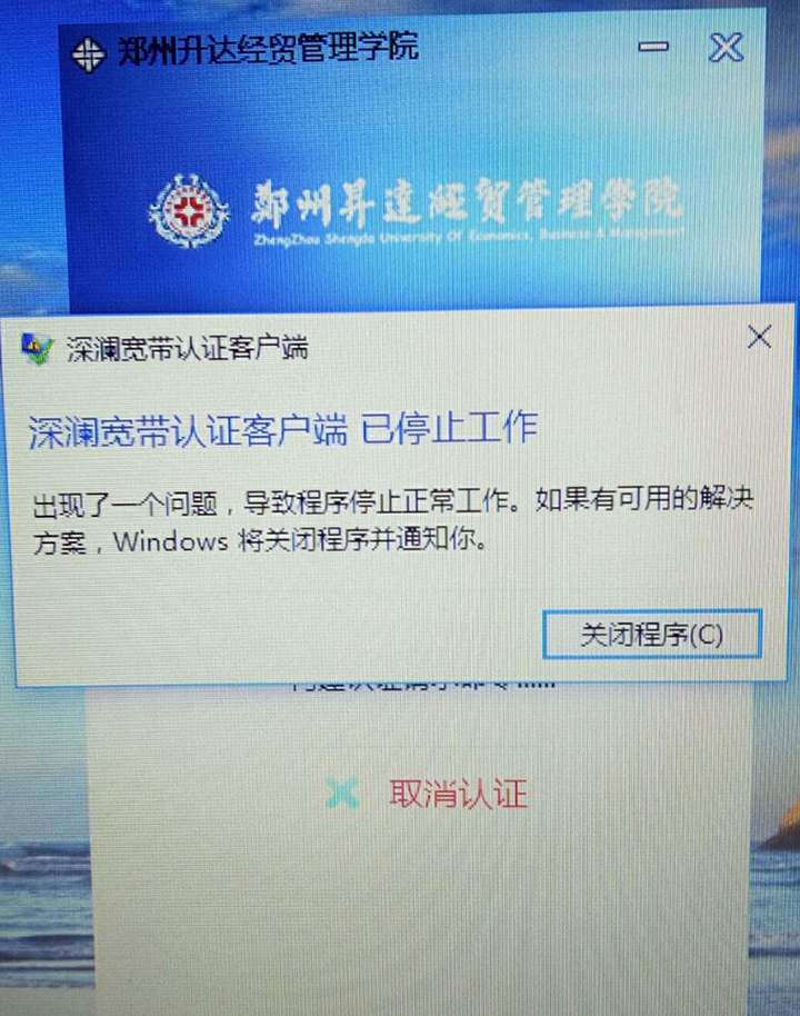 五、深澜宽带认证客户端已停止工作
