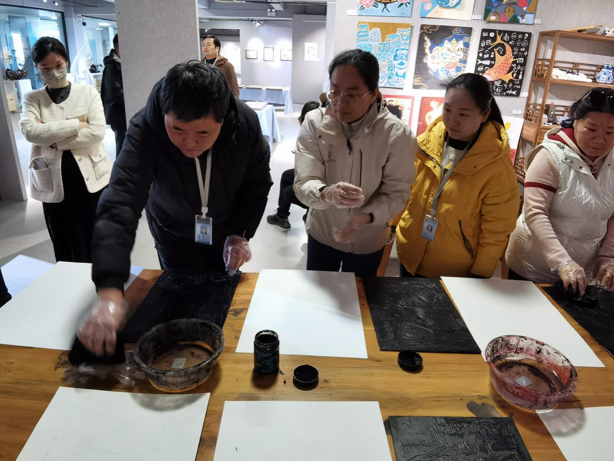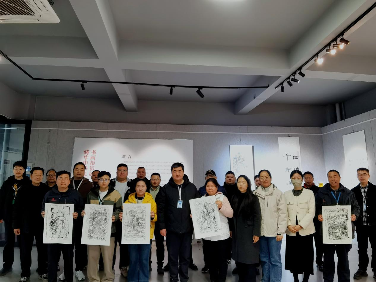 此次书画摄影展以“铸牢中华民族共同体意识”为核心主题,通过书法、绘画、非物质文化遗产互动体验等多种艺术形式,生动展现了各民族在长期历史发展中交融共生、守望相助的深厚情谊,描绘了中华民族一家亲、同心共筑中国梦的美好图景。 展厅内,一幅幅主题鲜明、意境深远的作品吸引了党员们的目光。书法作品笔力遒劲,或书写民族政策金句,或展现民族团结诗词,字里行间饱含着对民族共同体的深情诠释;绘画作品色彩斑斓,以细腻的笔触勾勒出各民族同胞共同生产生活、共庆传统节日的温馨场景;非遗版画体验真实鲜活,定格了各民族在文化交流、经济发展、社会进步中携手共进的精彩瞬间。