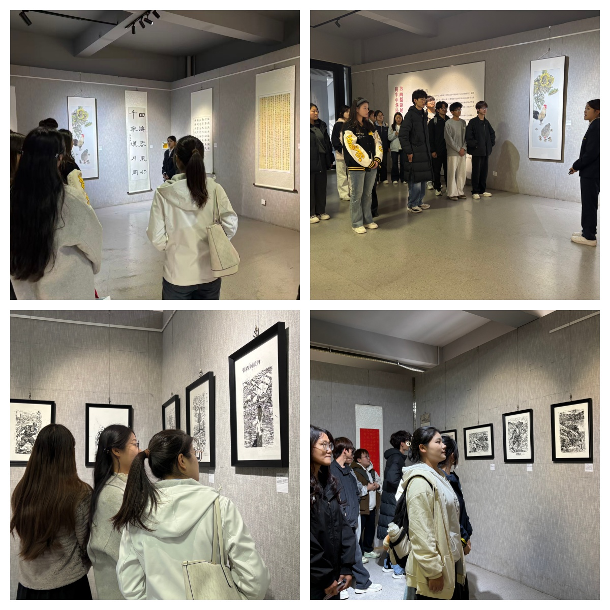 活动以书画摄影艺术为载体,讲解人员结合作品的创作背景、艺术特色与文化内涵,为师生进行细致解读。各类展品既彰显了中华优秀传统文化的深厚底蕴,又生动诠释了各民族文化交流互鉴、共生共荣、家国同心的精神内核。师生们认真聆听讲解,驻足观赏品味,不时交流心得,在笔墨丹青与光影瞬间的熏陶中,深化了对“中华民族多元一体格局”的认知。
