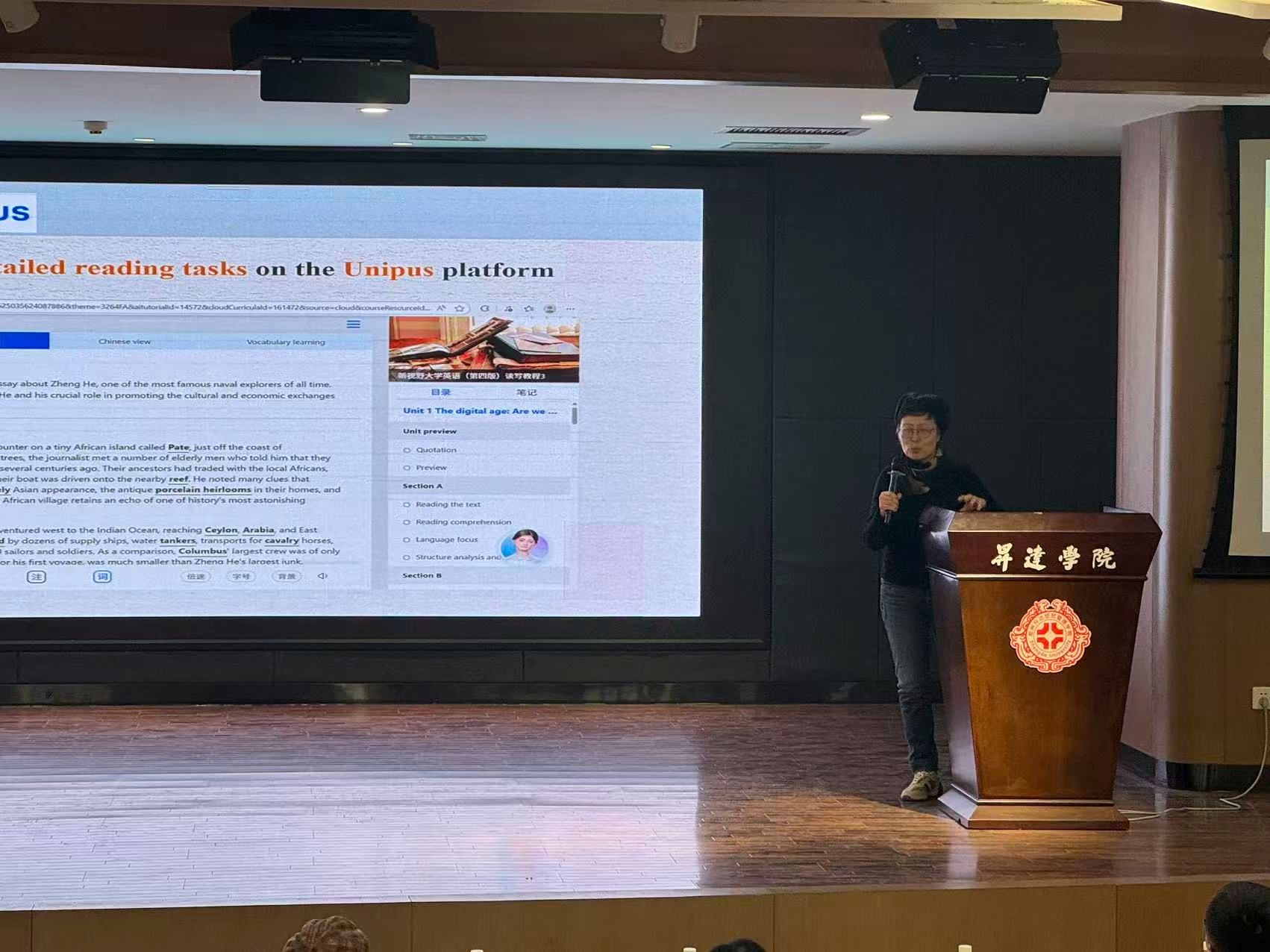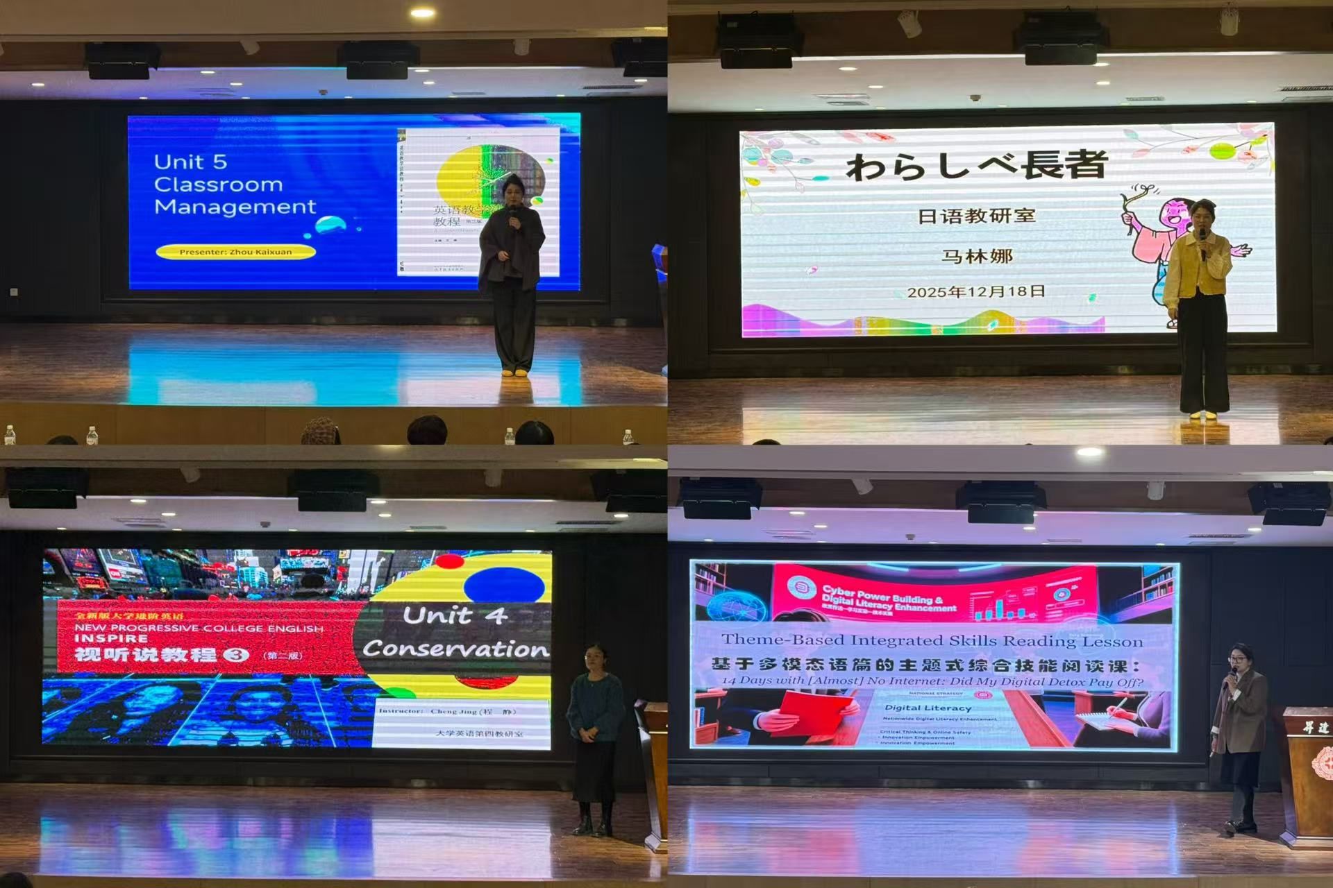 在正式比赛环节,参赛教师依次登台,围绕教学内容,有机融入党的二十届四中全会精神,开展说课与模拟授课。教师们教学思路清晰、教态自然,展现了良好的教学素养与课程思政融合能力,赢得了评审嘉宾和在场观众的一致好评。