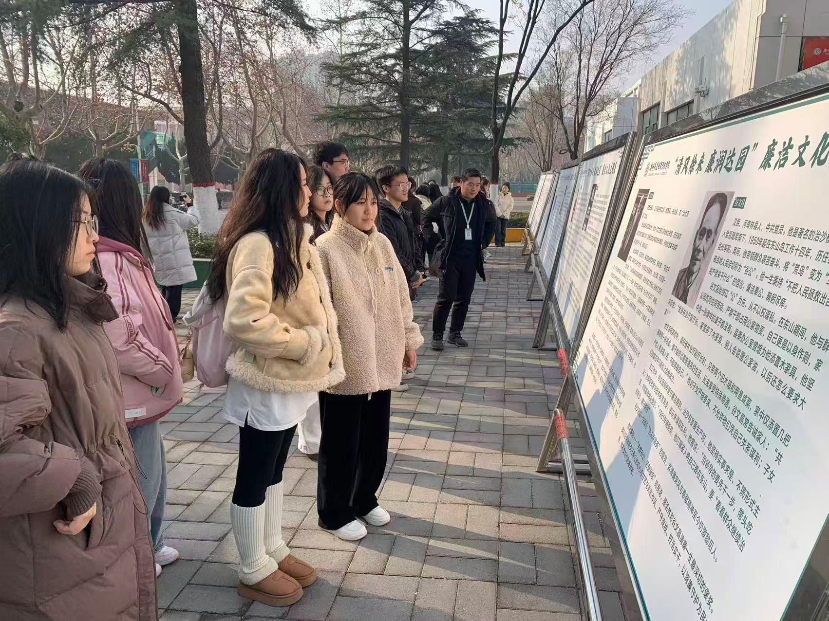 主题展既有历史长河中的廉洁典范,亦有新时代里的勤廉模范。参观过程中,师生们驻足凝视、认真阅读、相互交流。