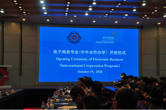 On October 19, the opening ceremony for the first class of Zhengzhou Shengda University of Economics Business and Management and Dundalk Institute of Technology (DKIT) China-Ireland Joint Education Program was held in the International Conference Center of the Administration Building. Leaders and teacher representatives of the two universities attended the ceremony. Students of the first China-Ireland cooperation education class also attended the opening ceremony. The opening ceremony was co-organized by the Business Department and the International Office .