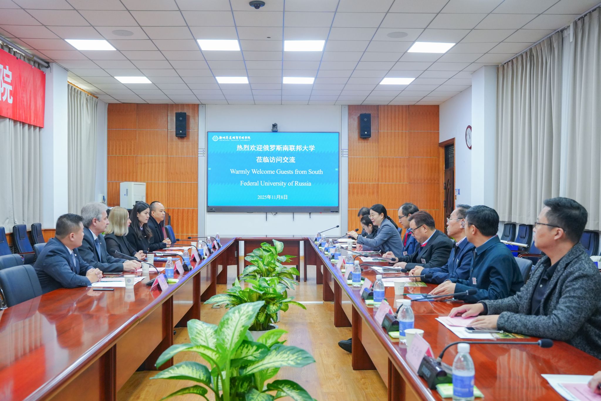 11月8日上午,俄罗斯南联邦大学数学、力学与计算机科学学院院长卡里亚金·米哈伊尔·伊戈尔耶维奇、管理学院副院长扎西吉娜·叶琳娜·康斯坦丁诺夫娜一行5人莅校交流访问。双方在行政楼第二会议室举办座谈会。董事长王新奇、副校长张金安、登封校区党工委书记沈定军出席会议。董事会办公室、科研处、国际交流处、培训中心、管理学院、数学与信息科学学院等部门主管参加座谈。