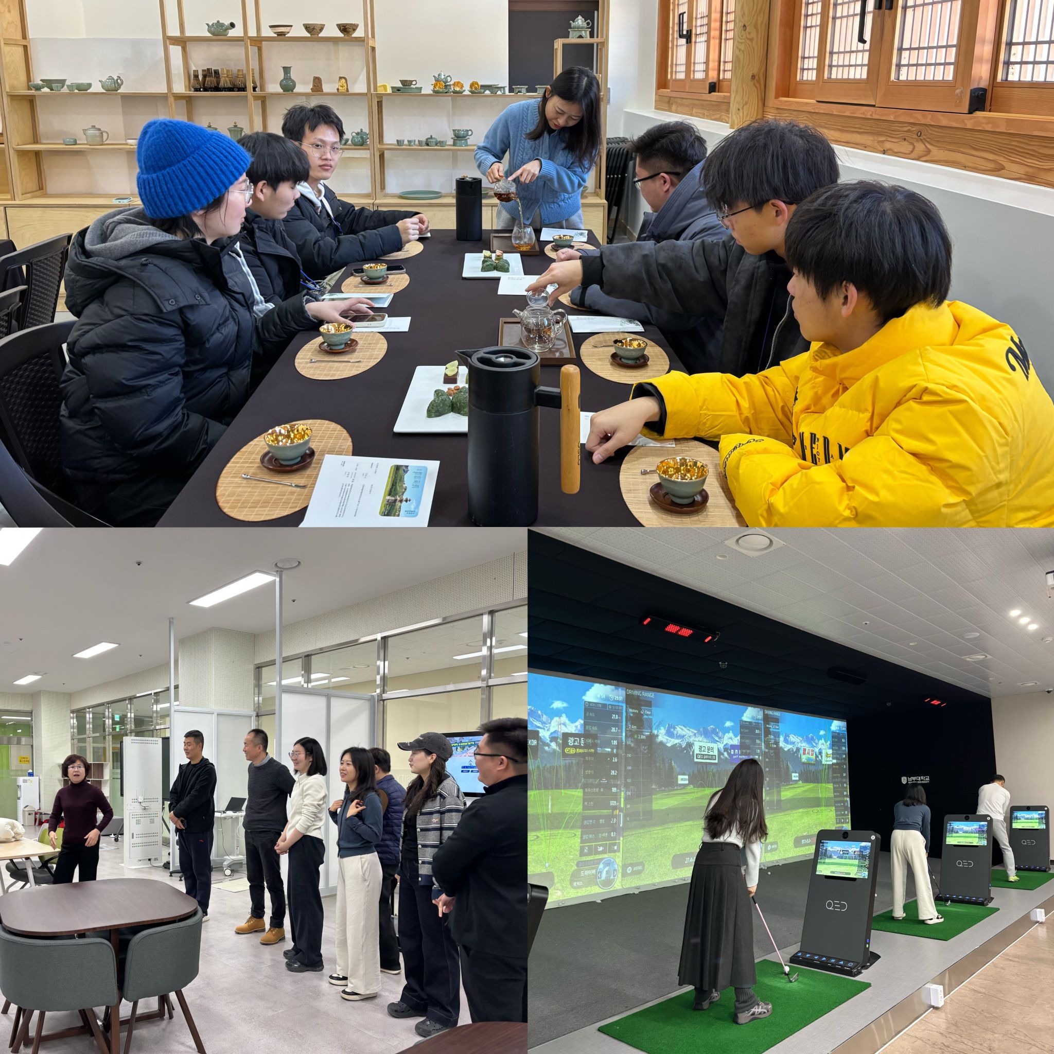 在韩期间,我校师生还深入体验了南部大学精心安排的特色课程和文化参访。其中,为体育专业学生量身打造的高尔夫、潜水等实践课程备受好评,其新颖的设计与实操性让同学们深入了解了相关领域的专业教学理念。同时,师生们还积极参与了文化工作坊以及城市探访等系列活动,与南部大学师生围绕专业知识、学业规划与文化主题进行了广泛交流。