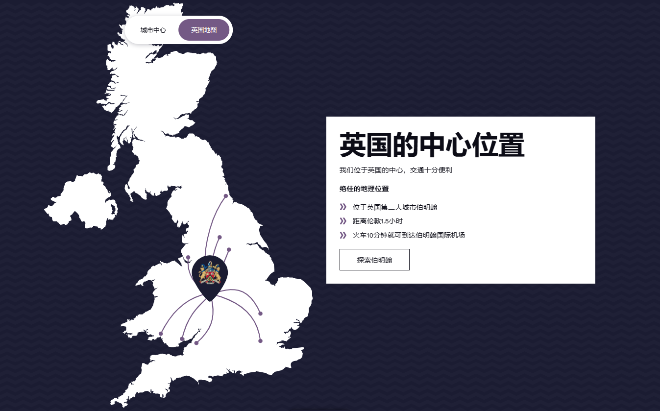 英国伯明翰大学学院(UCB)的前身是伯明翰酒店及旅游管理学院,创建于1968年,已有60多年的历史。学校在校生7000余人,位于英国第二大城市伯明翰市中心,邻近繁忙的会议及宾馆商务区,全国室内剧场、国际会议中心均在几步之遥。旅游、购物区也在学校公寓步行距离之内。伯明翰市每年接待大约两千两百万游客,其发展迅速的旅游业也为学生带来了更为广阔的就业机会。