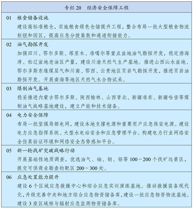 坚持立足国内、补齐短板、多元保障、强化储备,完善产供储销体系,增强能源持续稳定供应和风险管控能力,实现煤炭供应安全兜底、油气核心需求依靠自保、电力供应稳定可靠。夯实国内产量基础,保持原油和天然气稳产增产,做好煤制油气战略基地规划布局和管控。扩大油气储备规模,健全政府储备和企业社会责任储备有机结合、互为补充的油气储备体系。加强煤炭储备能力建设。完善能源风险应急管控体系,加强重点城市和用户电力供应保障,强化重要能源设施、能源网络安全防护。多元拓展油气进口来源,维护战略通道和关键节点安全。培育以我为主的交易中心和定价机制,积极推进本币结算。加强战略性矿产资源规划管控,提升储备安全保障能力,实施新一轮找矿突破战略行动。