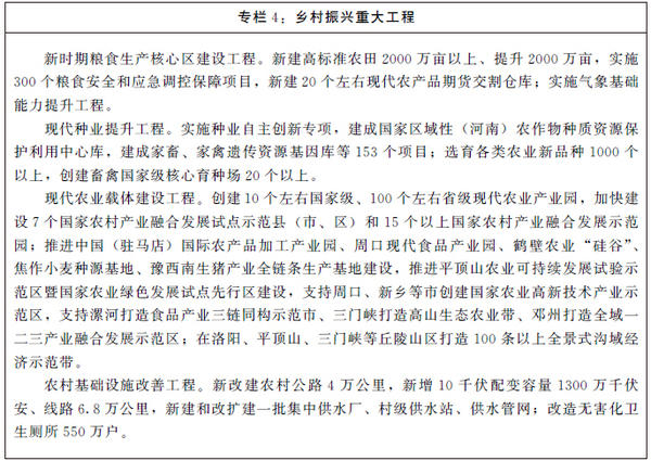 ——新时期粮食生产核心区和乡村建设行动。坚决扛稳粮食安全重任,推进高标准农田建设和种业自主创新,推动粮食产业三链同构,实施村庄基础设施和人居环境改善工程,强化农村公共服务供给县、乡、村三级统筹,加快农业农村现代化。