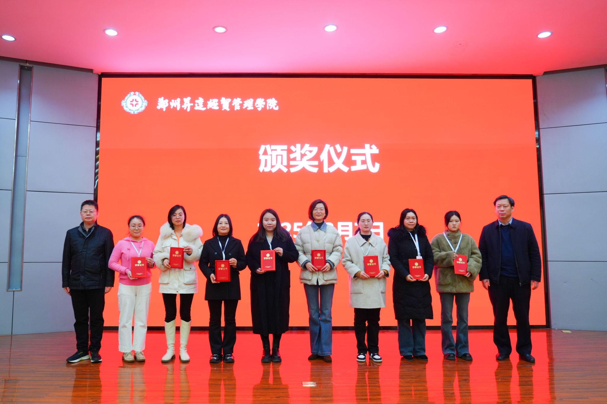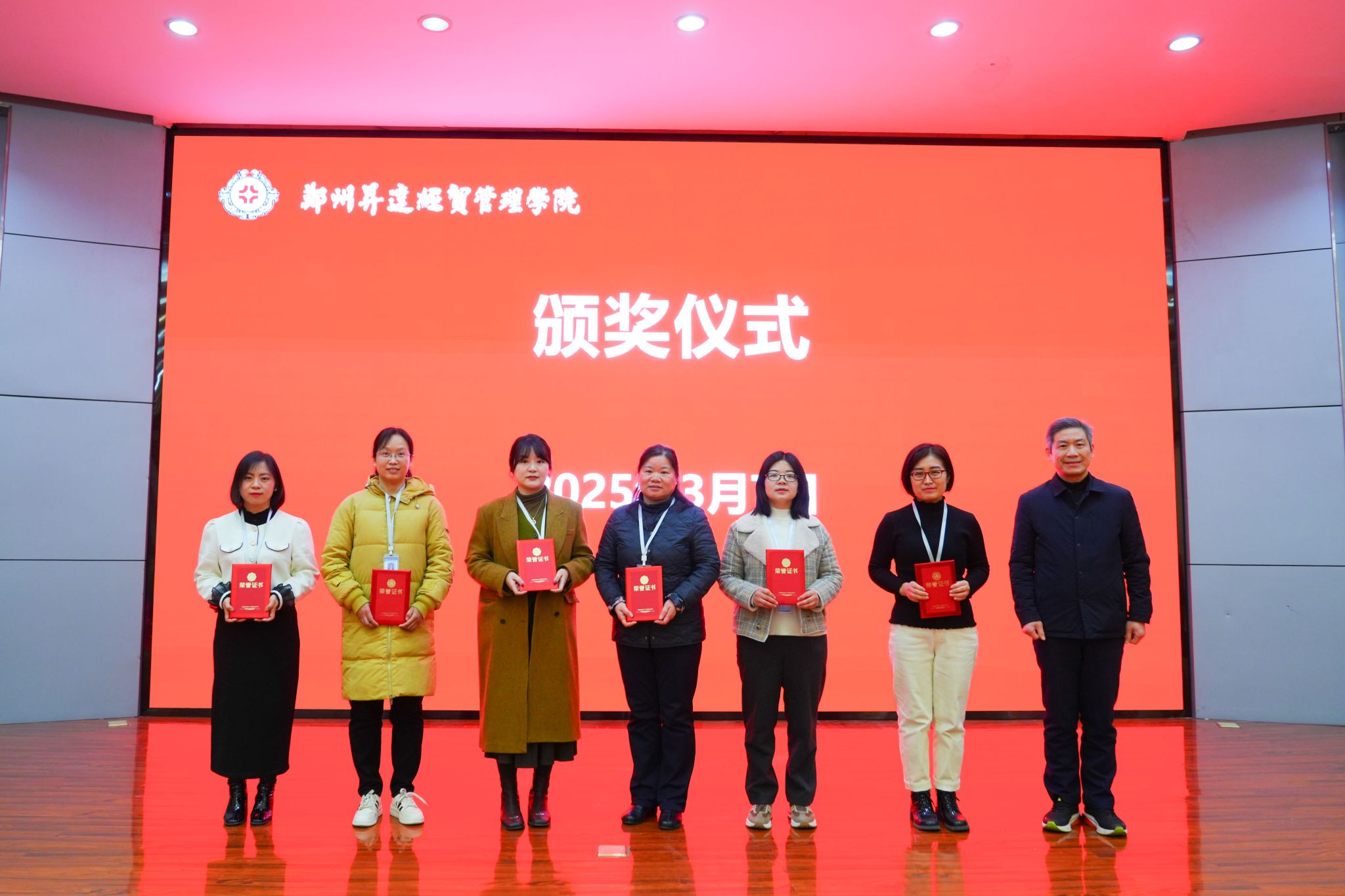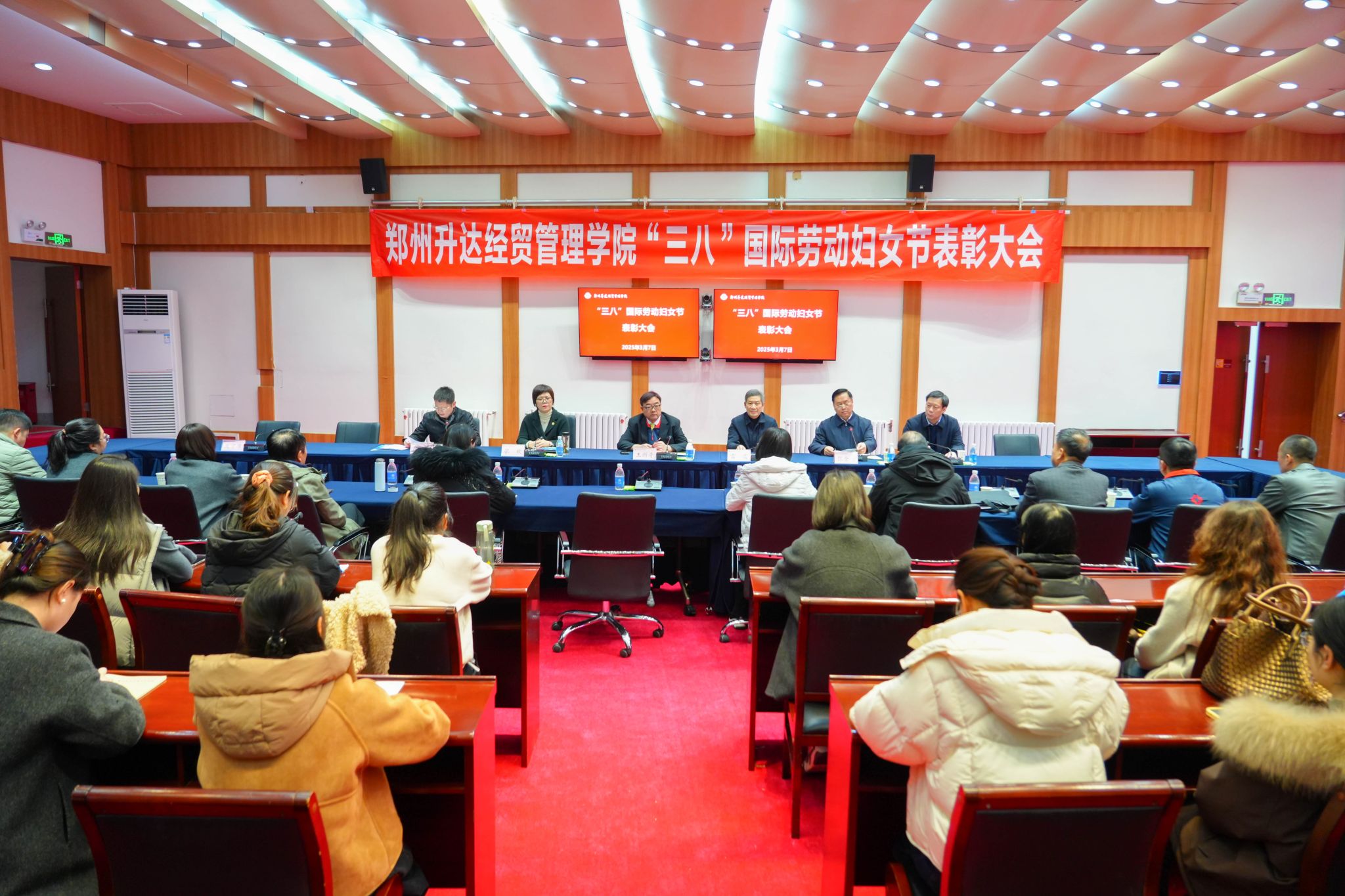 表彰大会在国歌声中拉开序幕。张其武宣读了《郑州升达经贸管理学院工会委员会关于表彰“巾帼建功标兵”和“女职工先进集体”的决定》。