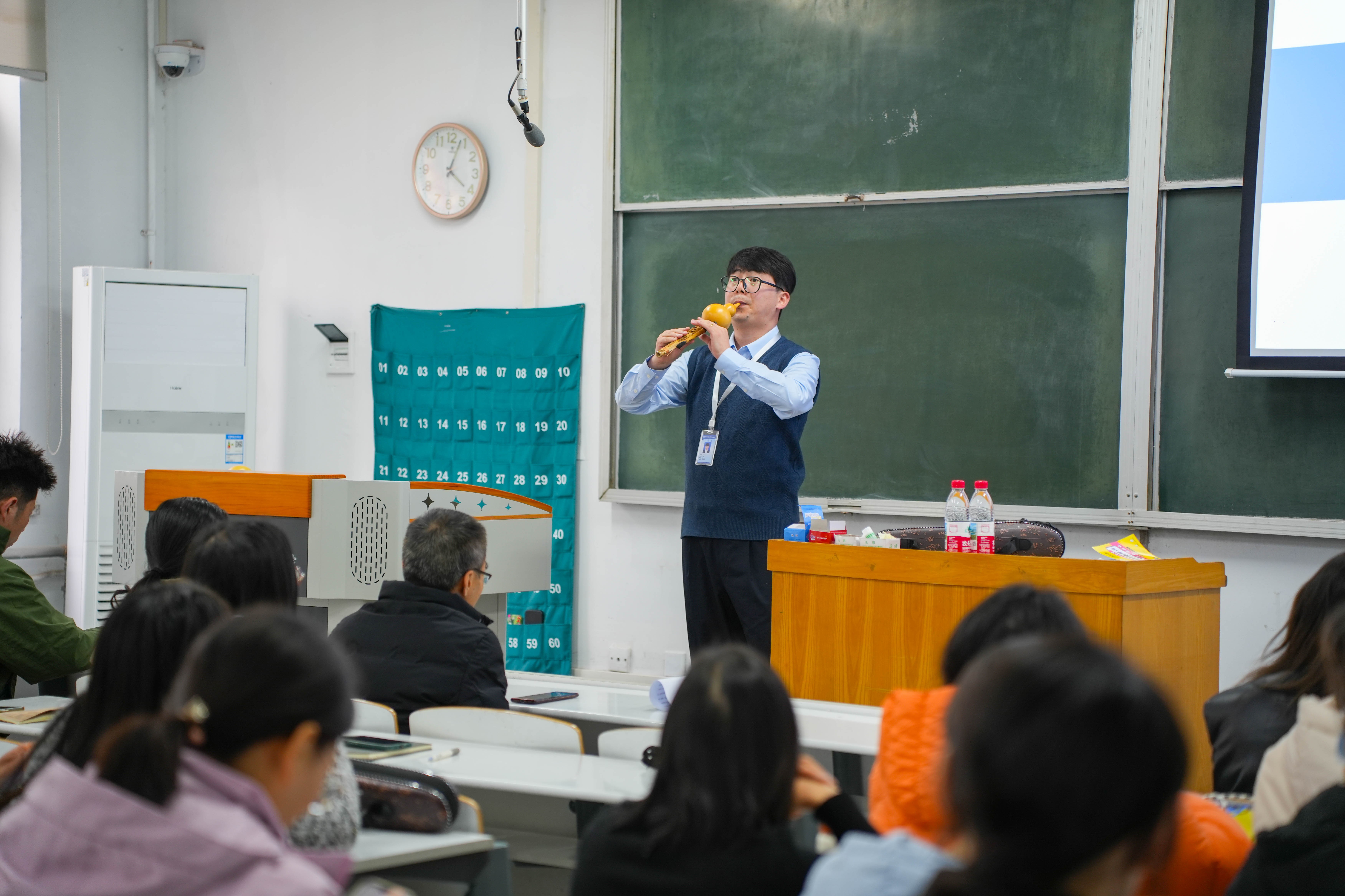 活动在王勇老师悠扬动人的《月光下的凤尾竹》葫芦丝演奏中拉开帷幕。葫芦丝作为源自云南少数民族的乐器,音色圆润质朴、温柔细腻,被誉为“东方萨克斯”,是我国宝贵的非物质文化遗产。本次公益课旨在让民族音乐走进校园,丰富教职工精神文化生活,传承中华优秀传统文化。