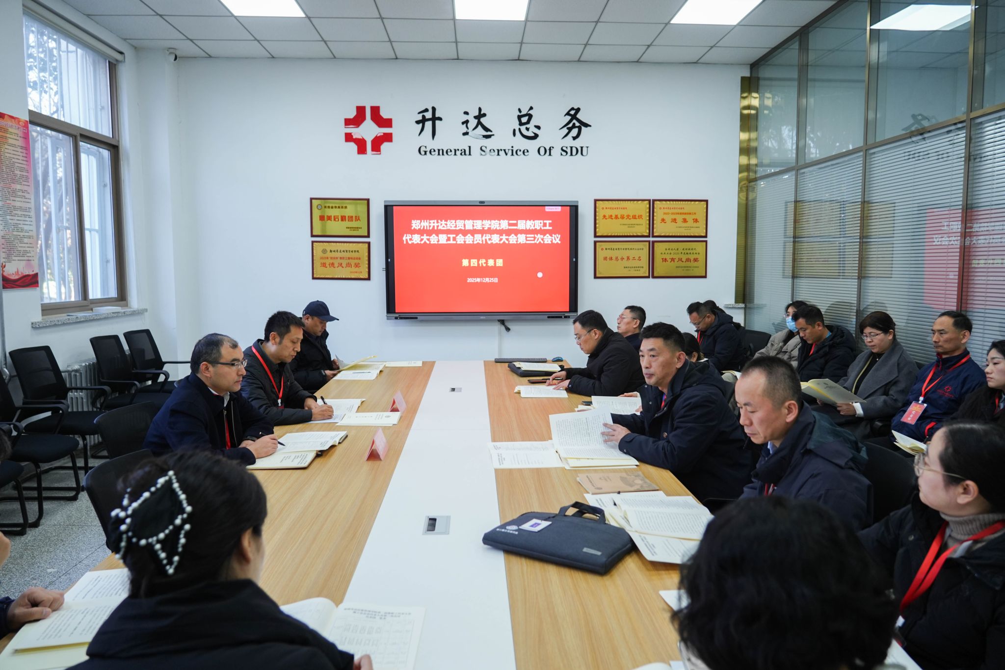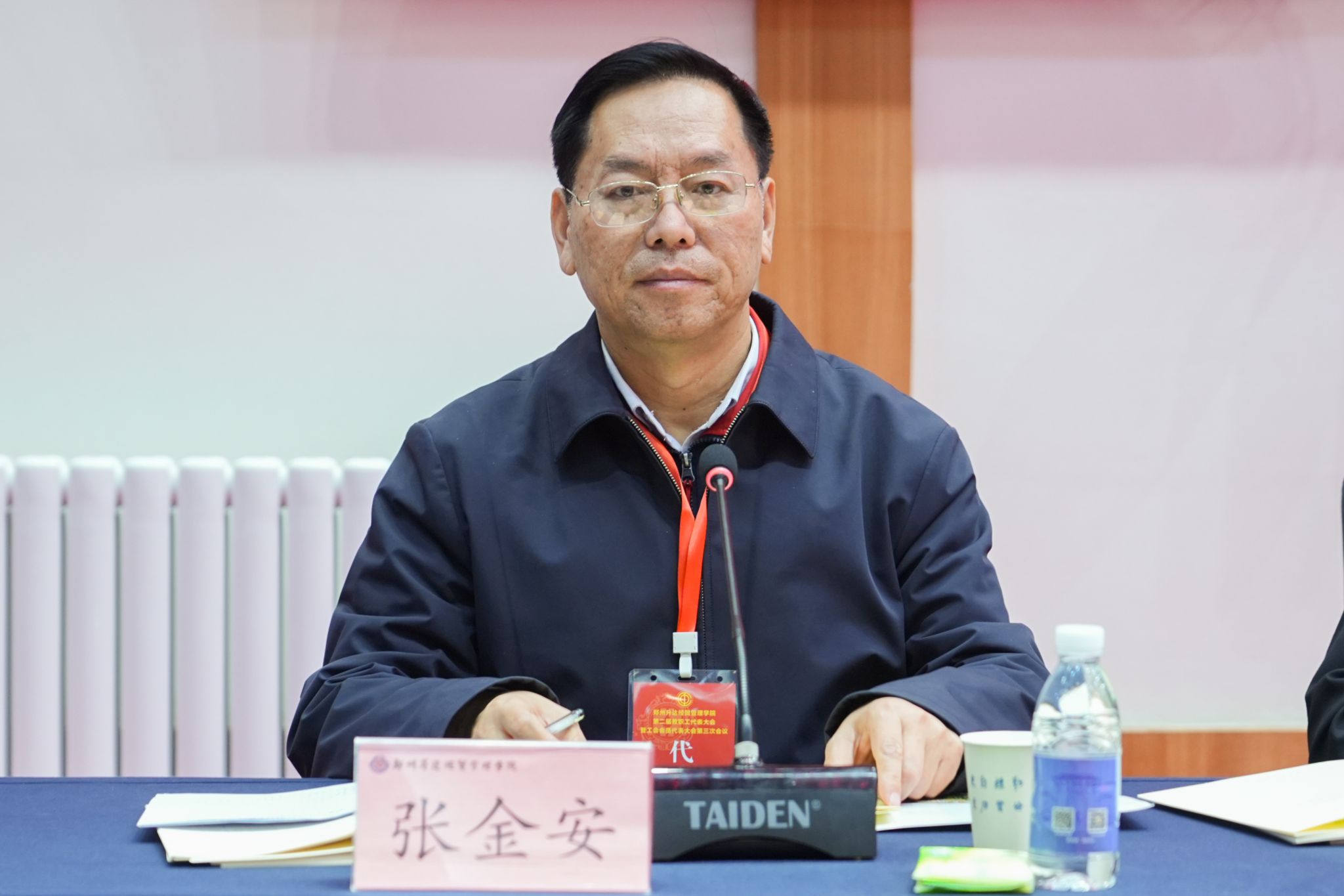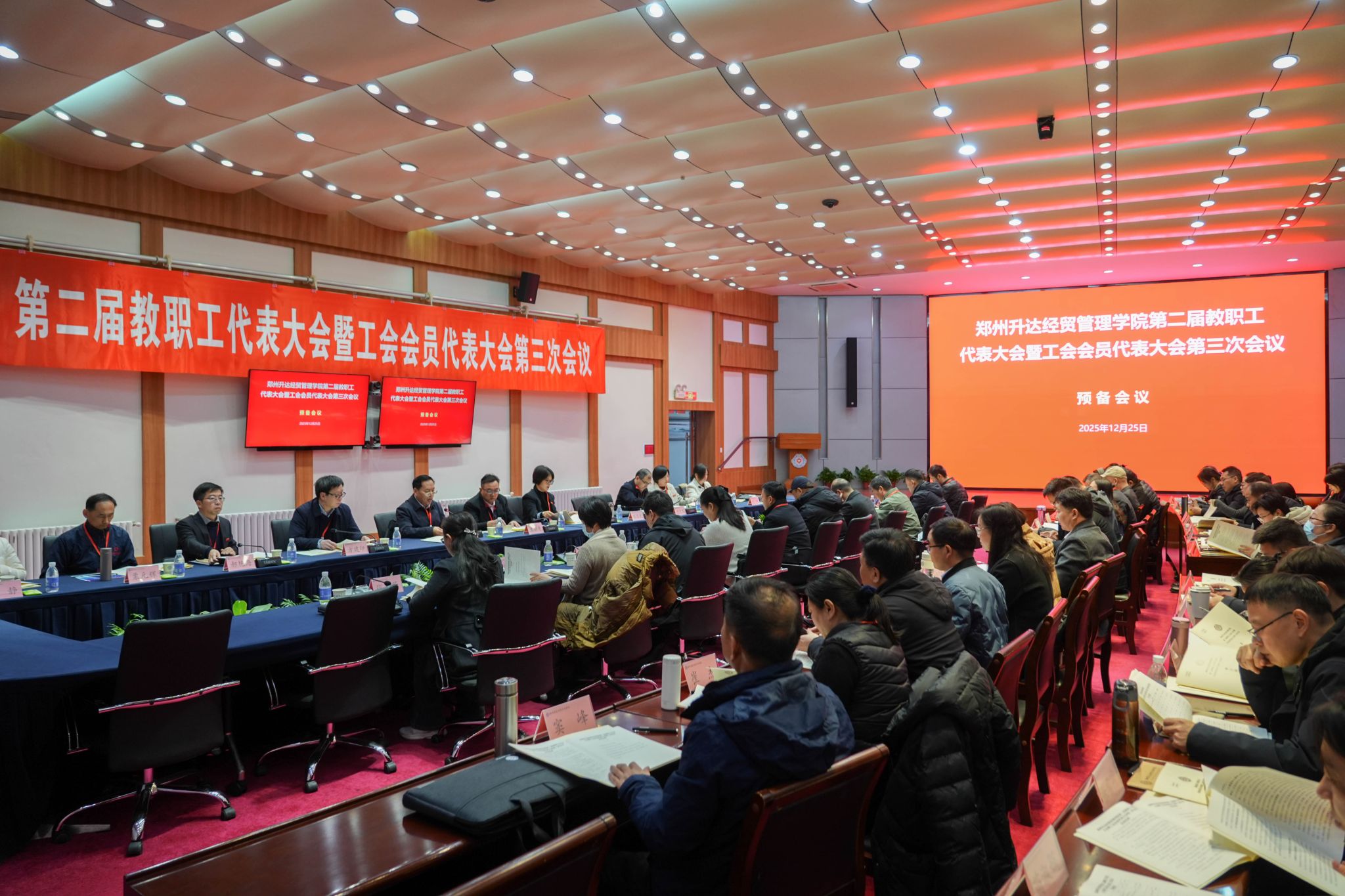 12月25日,为加强我校民主管理,充分发挥教职工行使民主权利、参政议政、民主管理的主人翁作用,我校第二届教职工代表大会暨工会会员代表大会第三次会议在国际会议厅召开。董事长王新奇,校长、党委副书记张欣,党委副书记、副校长、工会主席张金安,党委委员、副校长张其武,登封校区党工委书记沈定军等校领导出席会议。