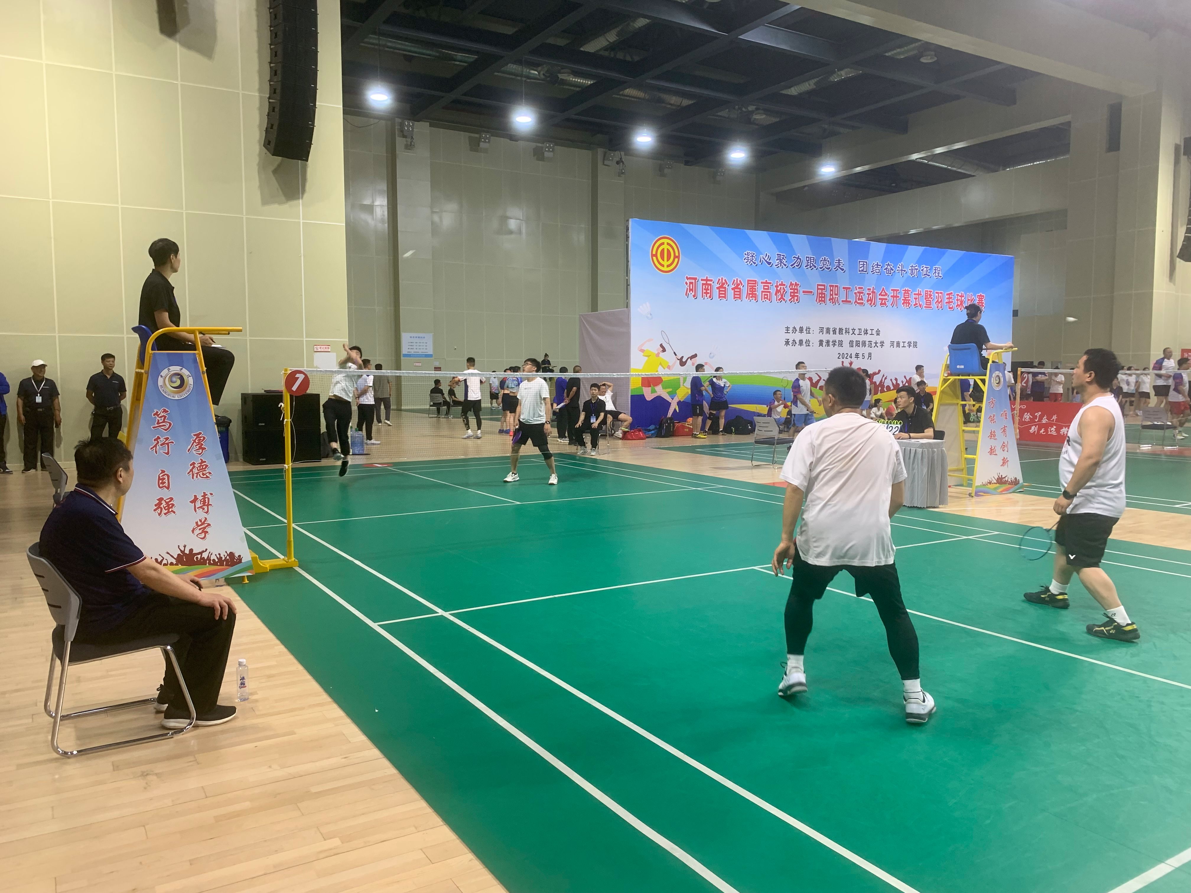 为进一步贯彻党的二十大精神和习近平总书记关于体育的重要论述精神,深入实施全民健身国家战略,展示省属高校广大干部职工良好精神风貌,提高职工健康素质,省教科文卫体工会决定举办河南省省属高校第一届职工运动会。其中,羽毛球比赛项目于2024年5月16日至17日在黄淮学院举行,全省44所高校组队近300名教工运动员参赛,我校由校工会专员杨明志带队参加比赛,荣获“道德风尚奖”。