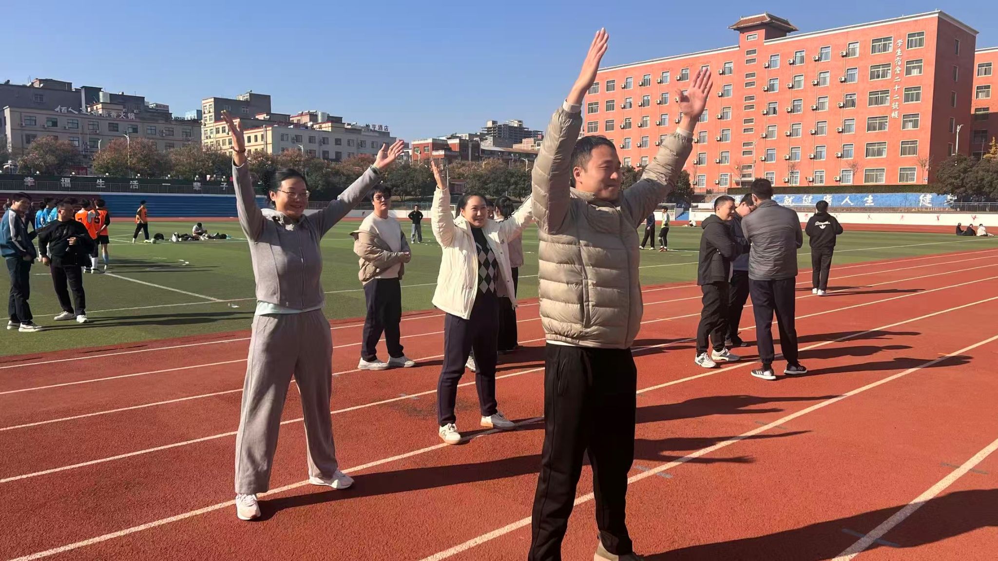 为确保参赛教职工以最佳状态投入比赛,有效预防运动损伤,赛前学院常海龙老师主动担纲热身指导,组织大家开展了专业的八段锦练习。伴随着舒缓的节奏,教职工们凝神静气,一招一式舒展有度,刚柔并济的动作不仅活动了筋骨、唤醒了体能,更让大家在动静之间放松了身心,为后续的竞技比拼做好了充分准备。