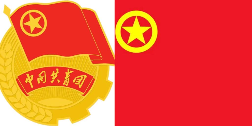 中国共产主义青年团旗帜的旗面为红色,象征革命胜利;左上角缀黄色五角星,周围环绕黄色圆圈,象征中国青年一代紧密团结在中国共产党周围。
