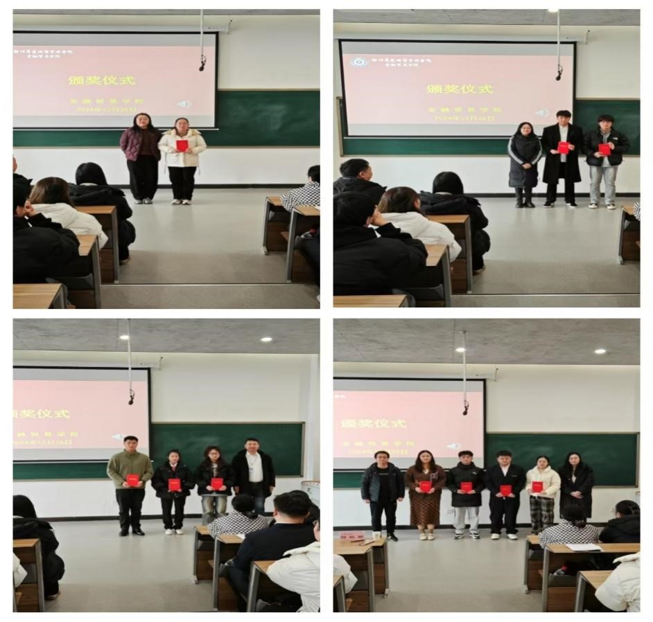 紧接着主持人根据分数高低宣读获奖名单。由王娟老师、张阳老师、刘合群老师、李光举老师和杨秋雨老师为获奖同学颁发奖状并合影留念。