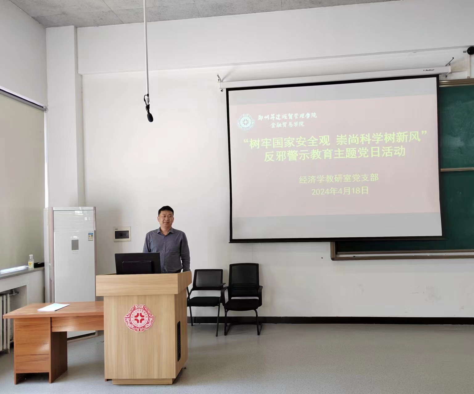 为进一步提高党员教师反邪意识、筑牢国家安全防线,4月18日,经济学教研室党支部在支部书记刘合群同志的带领下,于3号楼107教室举行“树牢国家安全观 崇尚科学树新风”反邪警示教育主题党日活动。
