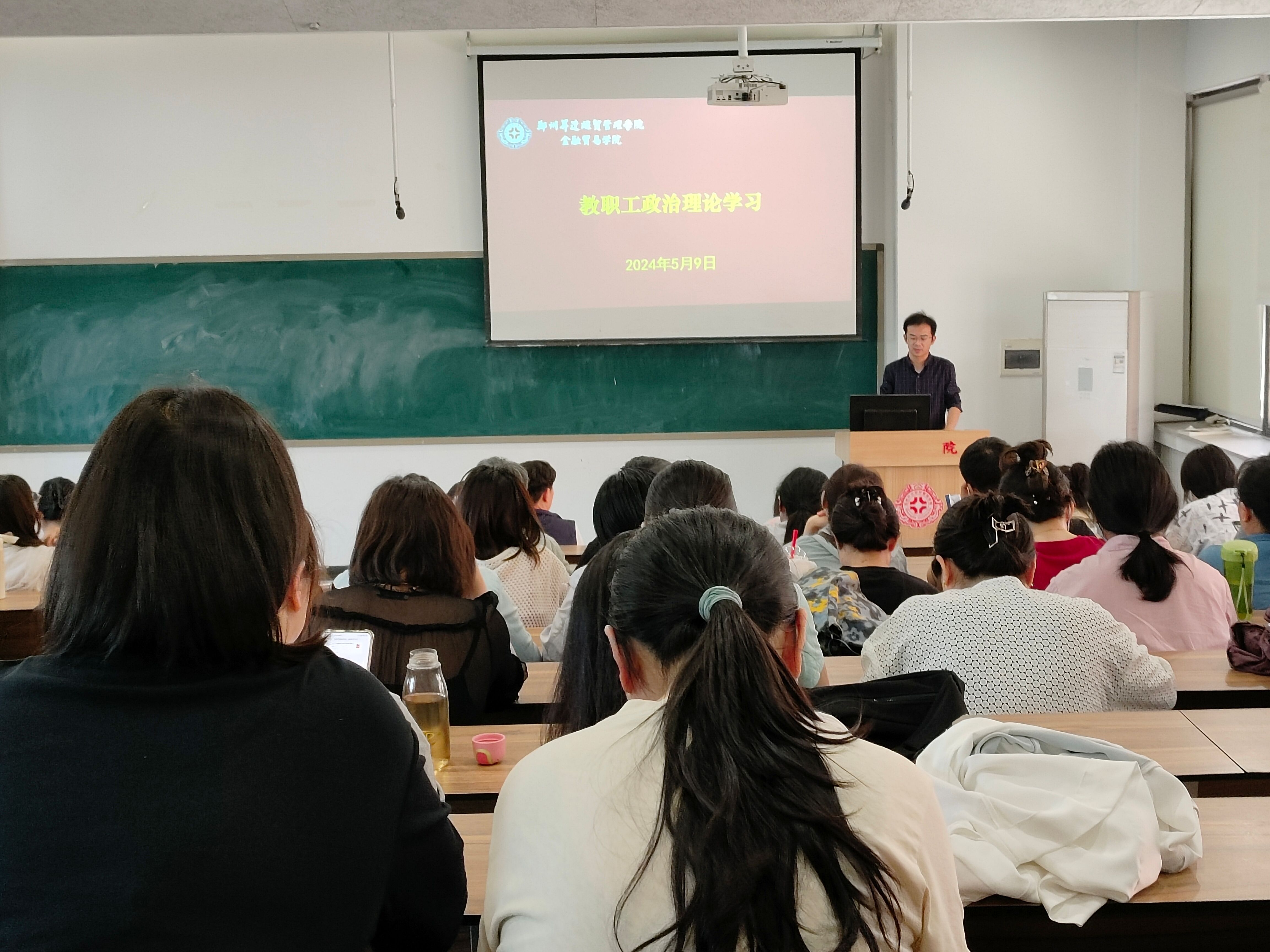 为深入学习贯彻习近平新时代中国特色社会主义思想,提高教职工的政治素养,5月9日,金融贸易学院在教学3号楼210教室组织召开教职工政治理论学习会议。本次会议由孙豪老师主持,金融贸易学院全体教职工参加。