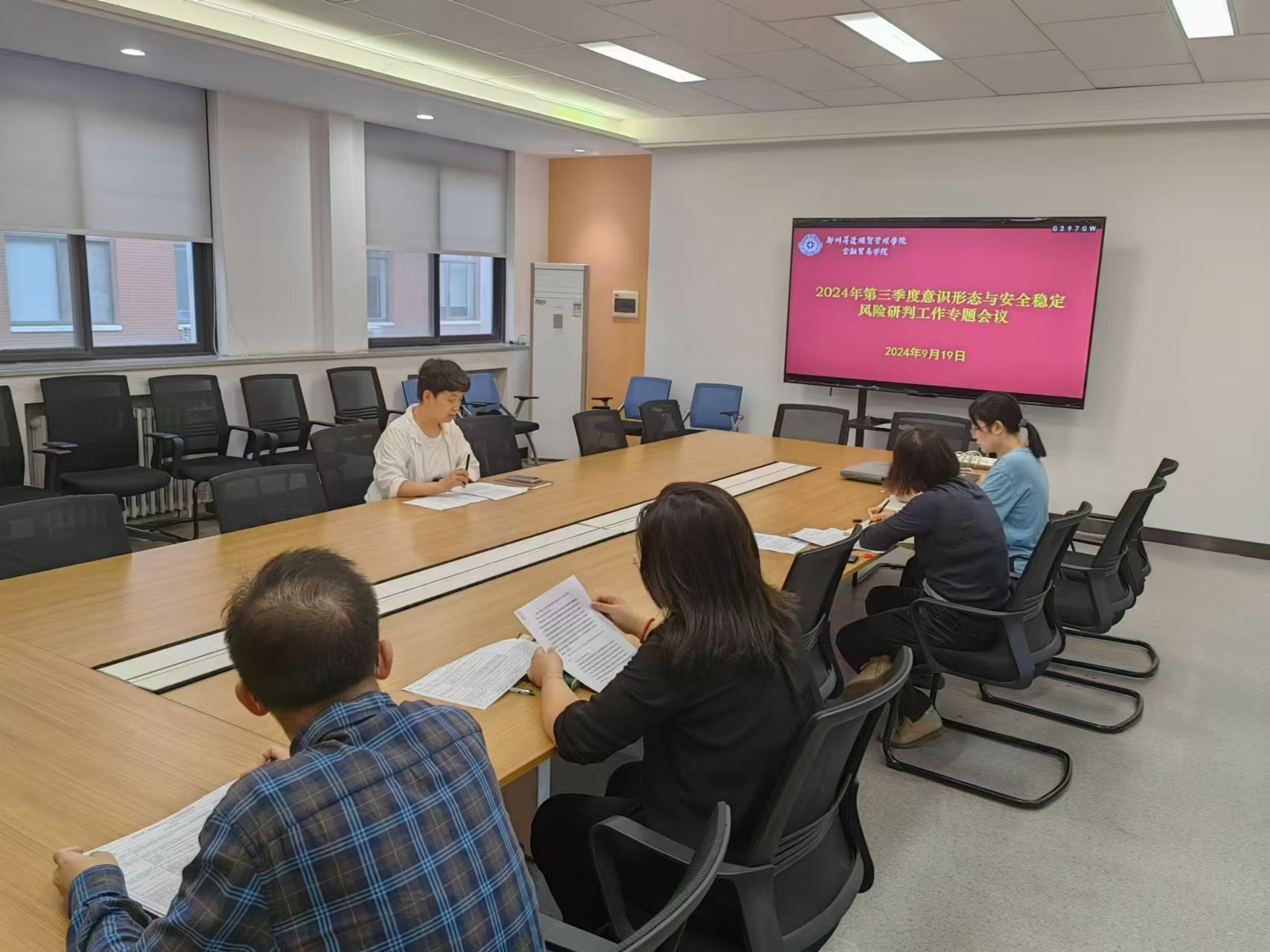 9月19日,金融贸易学院在3号教学楼212会议室召开2024年第三季度意识形态与安全稳定风险研判工作专题会议。会议由学院党委书记钟江鸽主持,全体党委委员参加。