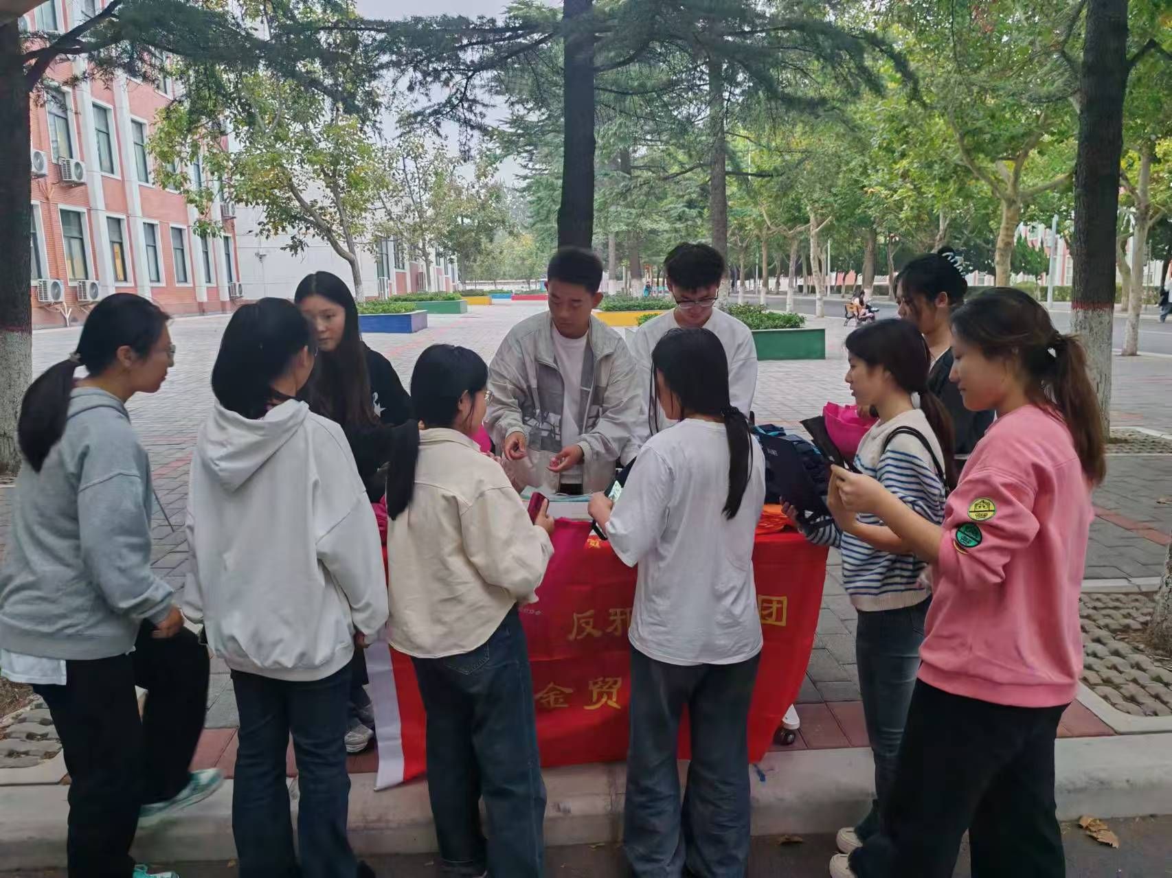 为弘扬科学精神,遏制邪教渗透,进一步提高同学们抵御邪教的能力,10月20日,金融贸易学院在3号楼前开展反邪教宣传活动。