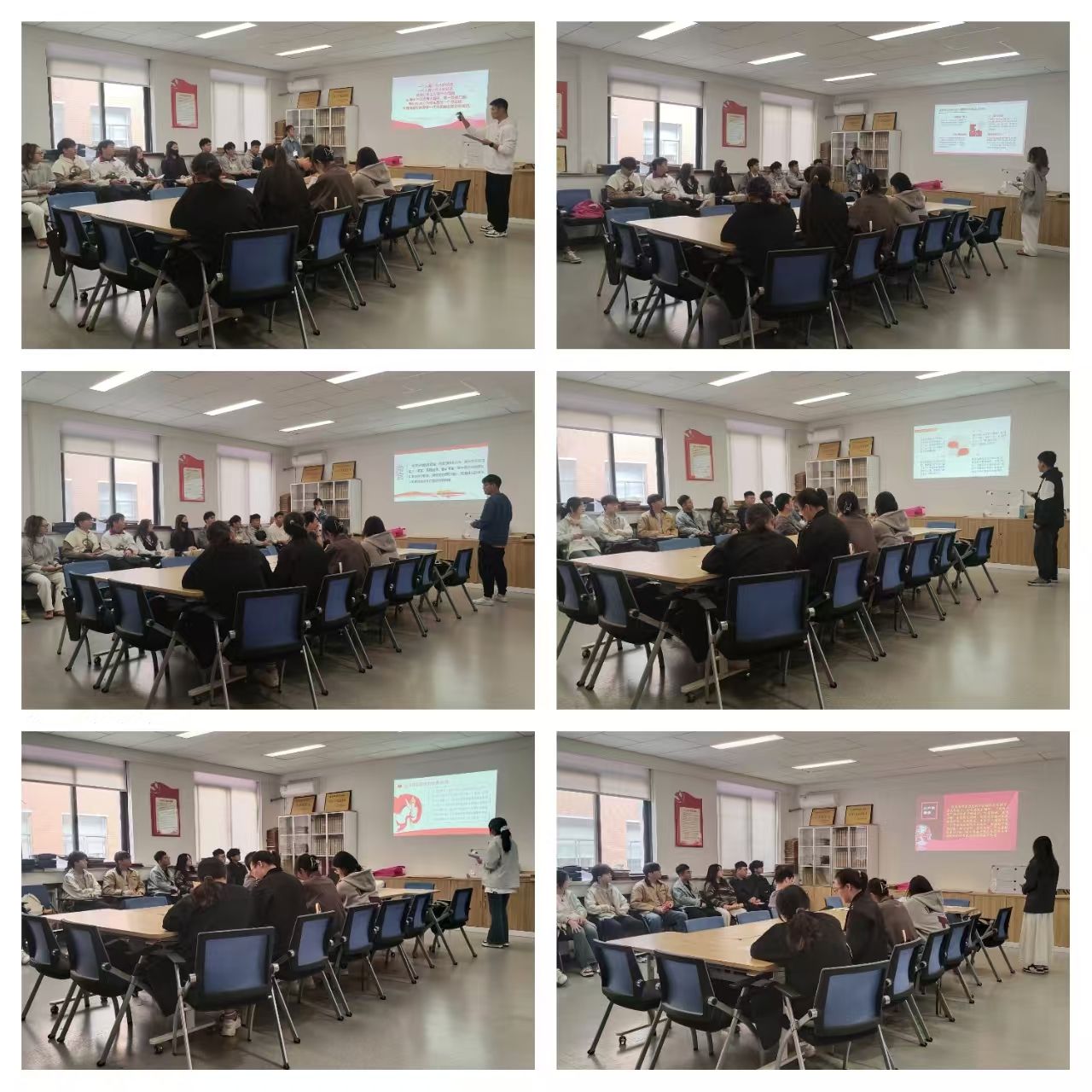 此次学习成果汇报主要内容围绕党课学习内容开展,各小组选出一名汇报人,以PPT的形式展开汇报。汇报人分别围绕“探寻红色印记,传承红色基因”、“青年扬帆正当时,党性政治齐发展”、“如何严格遵守并贯彻《中国共产党章程》”、“增强廉洁文化意识,坚守清风廉政底色,弘扬清风正气”、“新时代青年如何从中国共产党人精神谱系中汲取奋斗力量”等主题进行成果汇报。