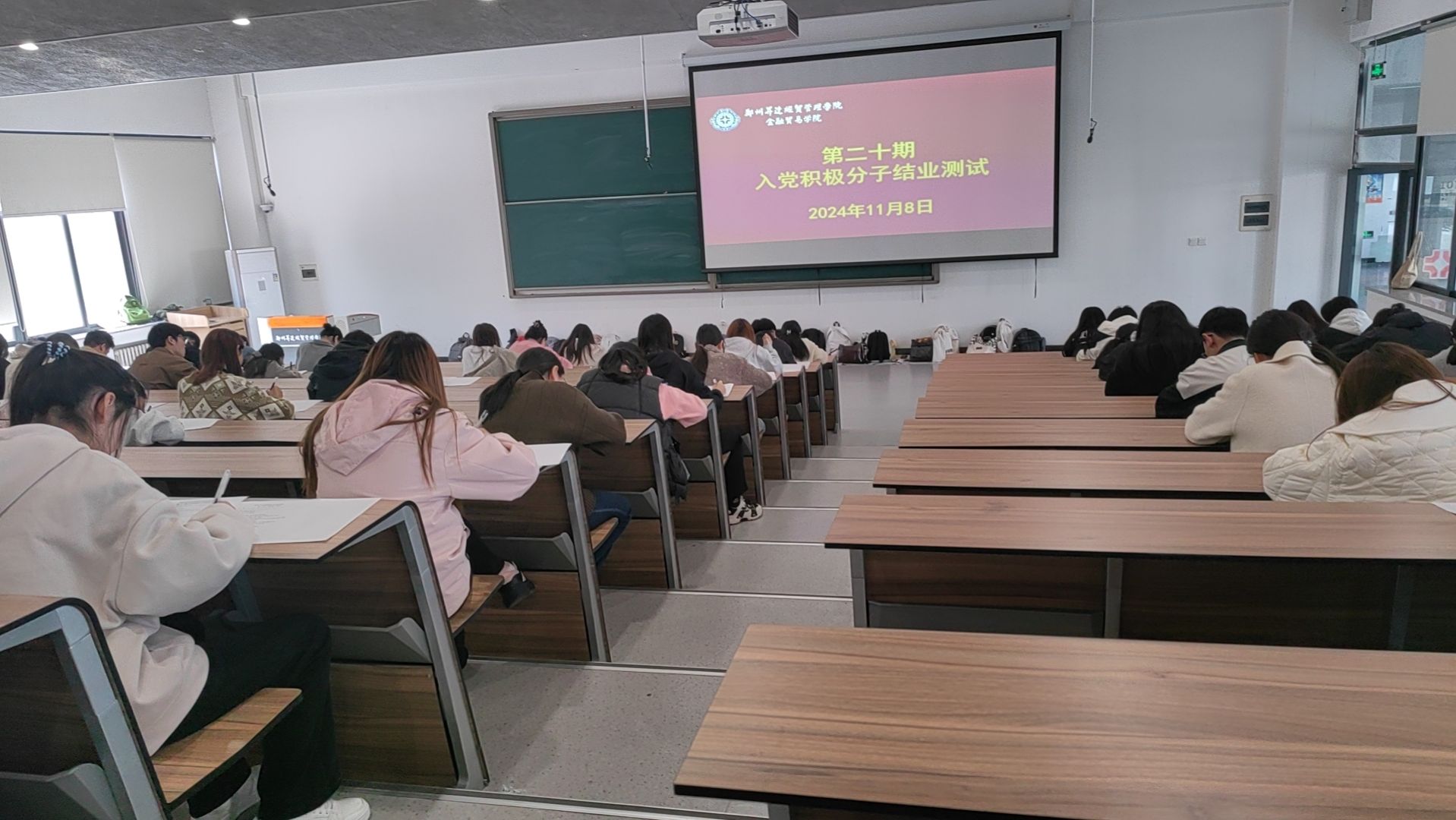 11月8日,金融贸易学院党委在3号楼107教室组织开展了第二十期入党积极分子结业测试。此次测试旨在提高第二十期入党积极分子对党的理论认知水平,检验大家的党课学习情况。第二十期入党积极分子全体成员参加了此次测试。