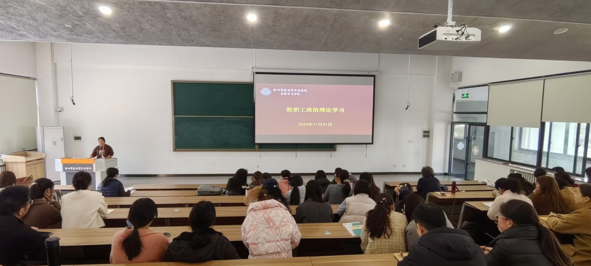 11月21日,金融贸易学院在教学3号楼107会议室组织召开教职工政治理论学习会议,会议由学院王敏老师主持,全体教职工参加。