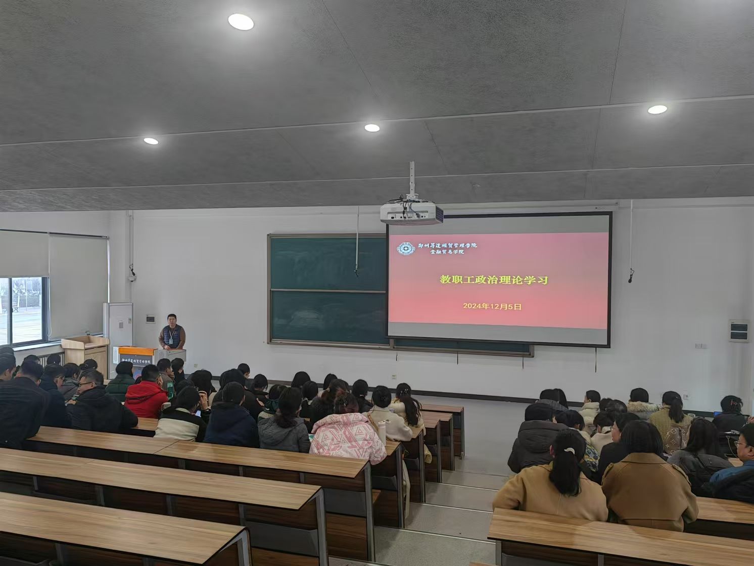 12月5日,金融贸易学院在教学3号楼107会议室组织召开教职工政治理论学习会议,会议由金融学教研室党支部纪检委员张翔主持,全体教职工参加。