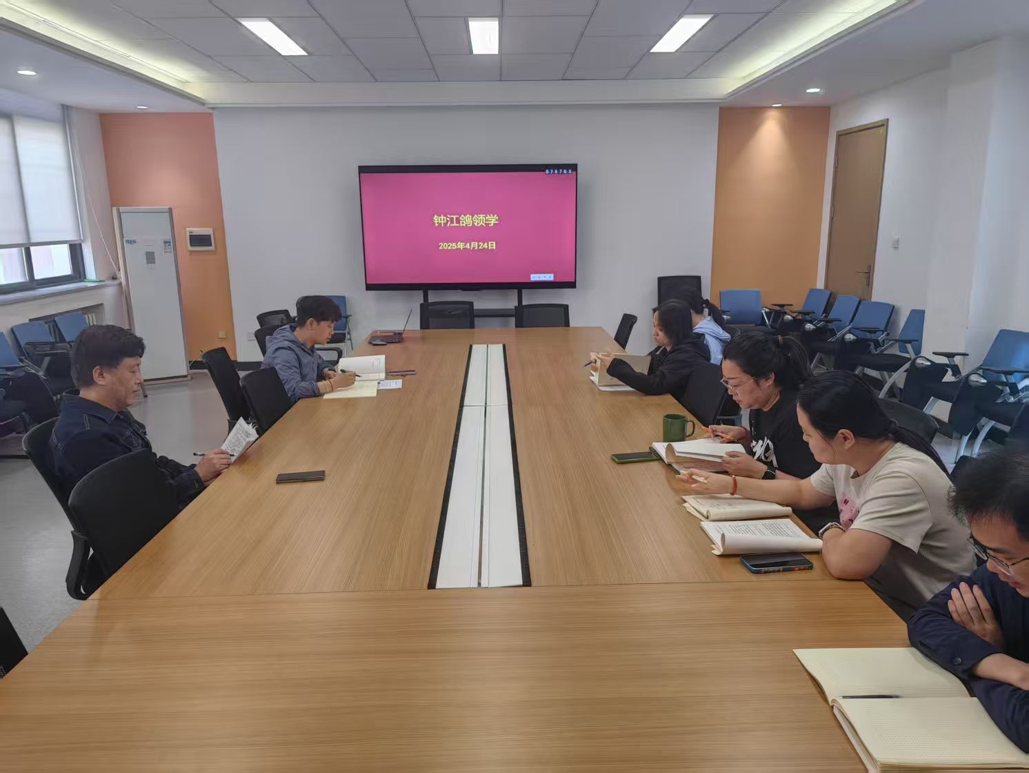 钟江鸽总结讲话中说要深刻领悟“作风建设永远在路上”的内涵要义,紧抓常抓细抓作风之弦,以清正作风引领优良学风,激发迎难而上的奋进力量,围绕学院中心工作进一步加强作风建设,深入师生一线摸实情、解难题。