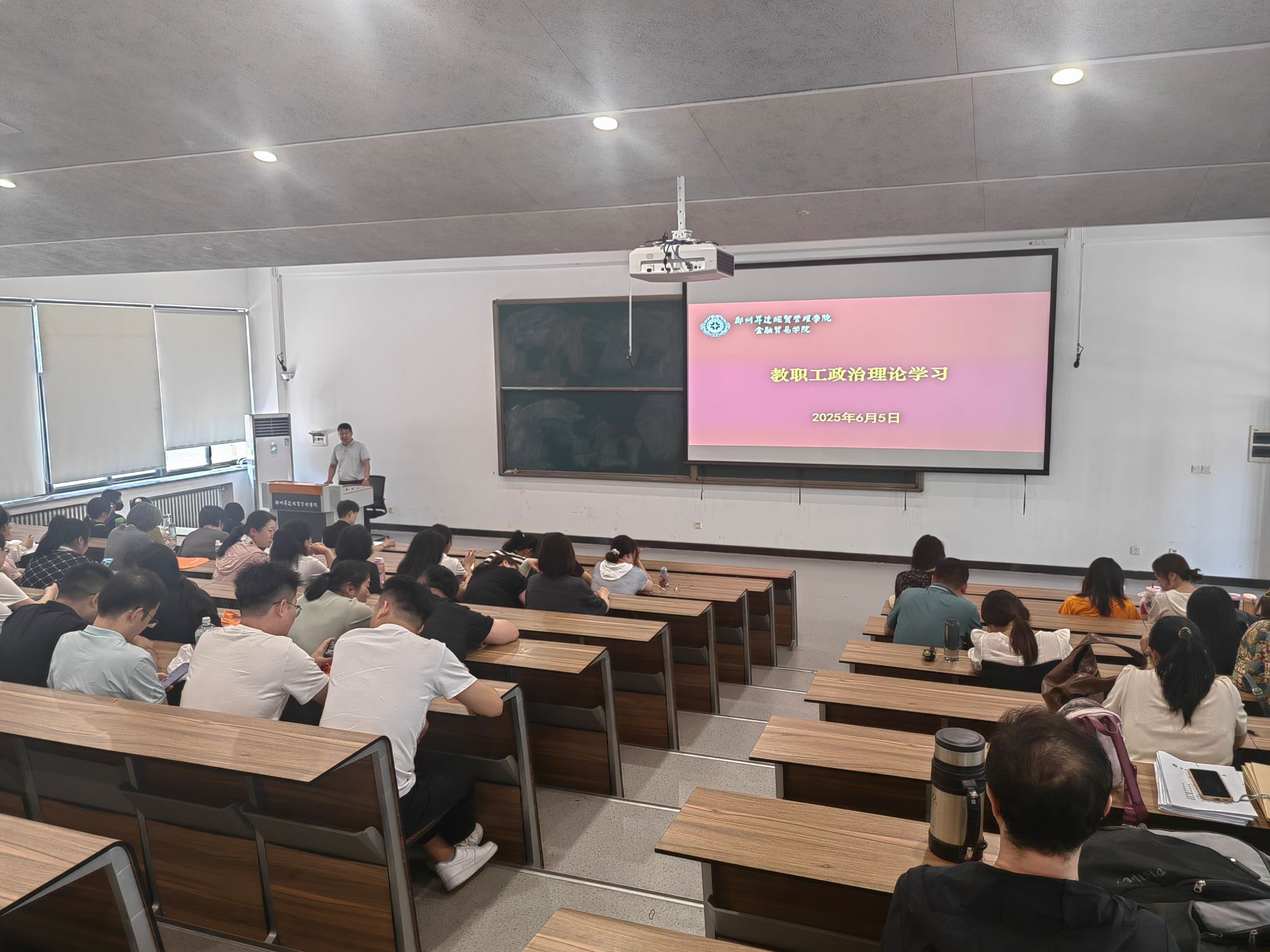 2025年6月5日,金融贸易学院在教学3号楼107会议室组织召开教职工政治理论学习会议,会议由刘合群老师主持,全体教职工参加。