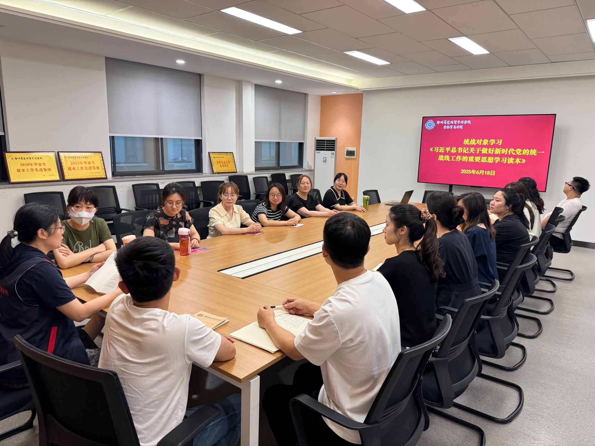 2025年6月18日,金融贸易学院在3号楼212会议室召开统战对象统一战线理论学习会。学院党委统战委员张阳主持会议,学院党外知识分子和民主党派教师参加了此次学习会。