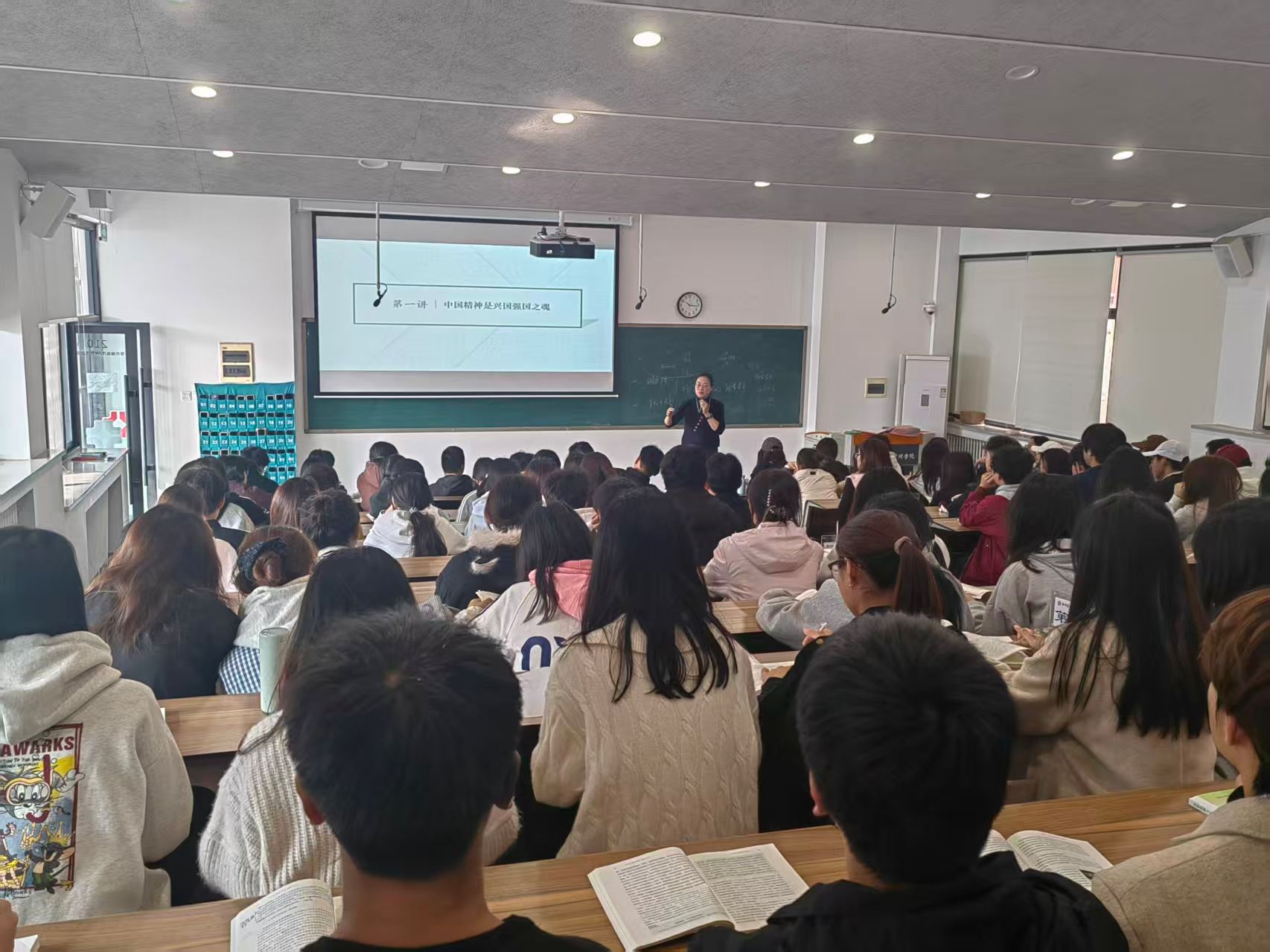 11月13日,金融贸易学院党委书记张小雁在3号楼210教室讲授“继承优良传统 弘扬中国精神”专题党课,引导青年学子筑牢理想信念根基。