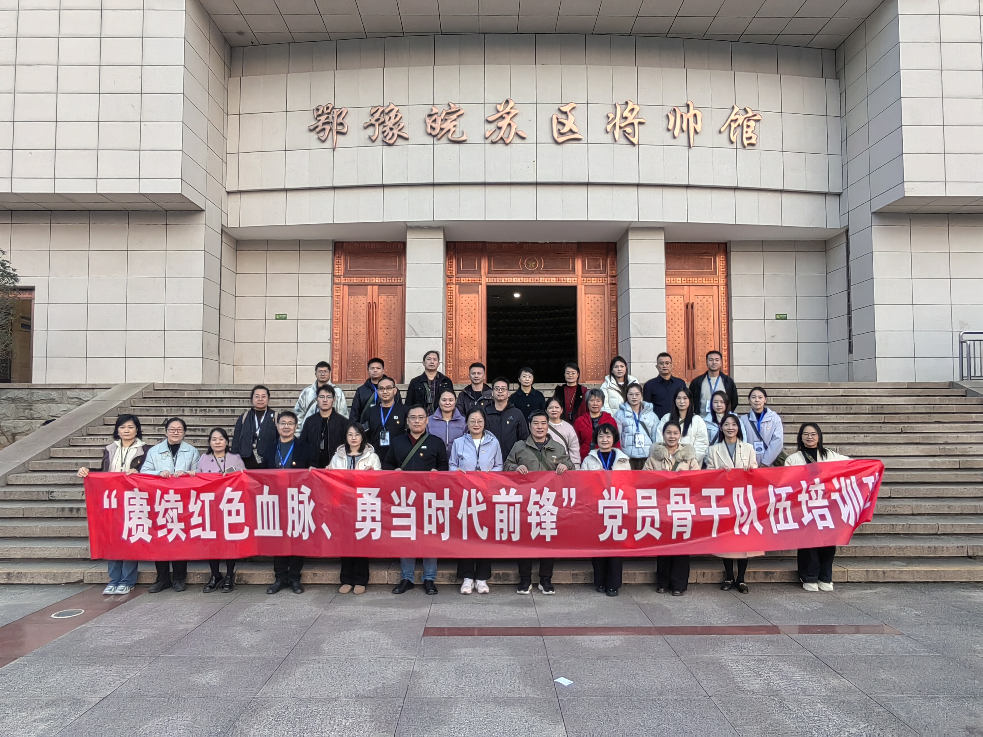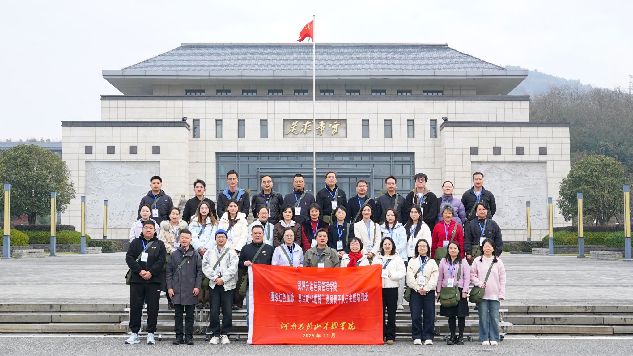 为深入学习贯彻党的二十届四中全会精神,教育引导党员传承红色基因、锤炼党性作风,进一步推动落实中央八项规定精神常态化长效化。11月21-23日,外国语学院党委、文法学院党委和金融贸易学院党委组织党员骨干一行四十余人赴河南大别山干部学院开展“赓续红色血脉、勇当时代先锋”教育培训。本次培训通过专题授课、现场教学等多元化形式,引导党员骨干在革命传统中汲取奋进力量,为学院高质量发展凝聚思想共识与实践动能。