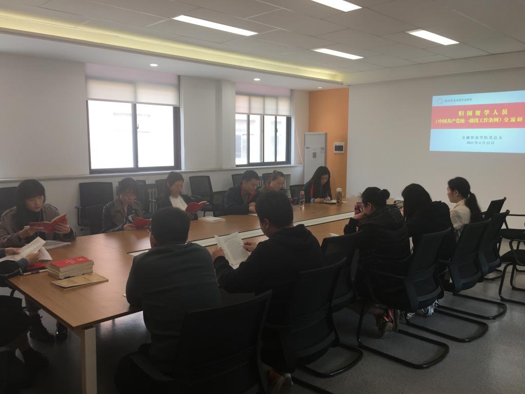4月22日中午,学院归国留学人员开展《条例》交流研讨。学院全体归国留学人员参加本次学习,会议由学院党总支委员张阳领学。