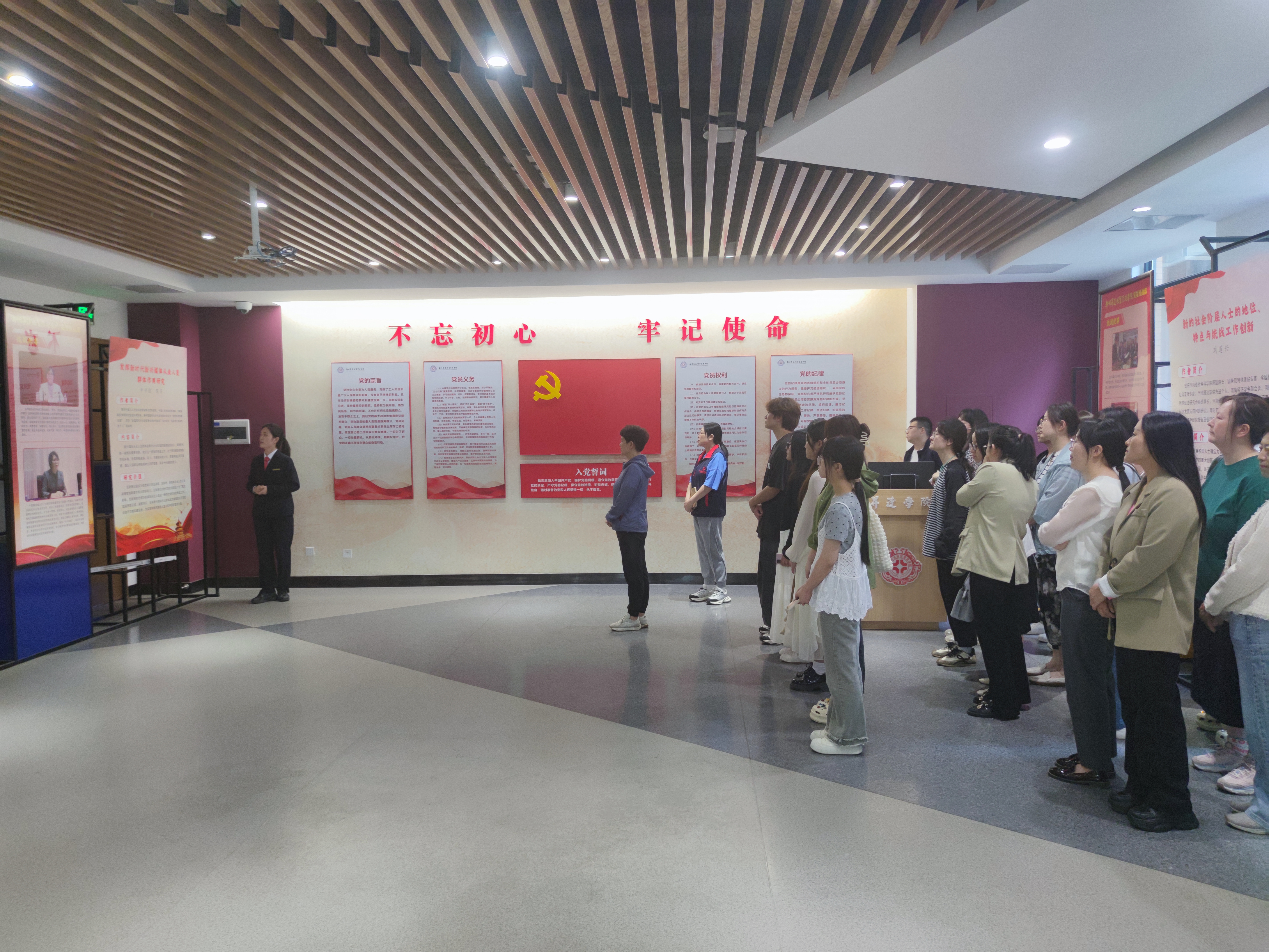 在参展过程中,师生们认真观摩了一系列丰富的展示内容,包括理论研究成果、实践案例以及新的社会阶层人士的先进事迹等。大家通过参观展板,深入了解新的社会阶层人士在社会发展中的重要作用,以及统战工作的重要意义和目标。参观活动结束后,全体参观成员合影留念。