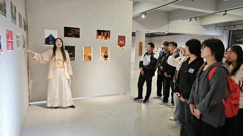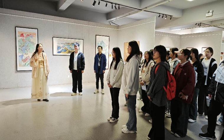 在看展过程中,讲解员为全体成员介绍了多个展品,包括摄影、水墨画、书法等艺术作品。在观看过程中,成员们被展品独特的创意和表现形式所吸引,纷纷拿起手机记录,认真聆听着讲解,细致地观察着每一个展品,大家不仅领略了艺术的魅力,更体会到了中华文化的内涵。