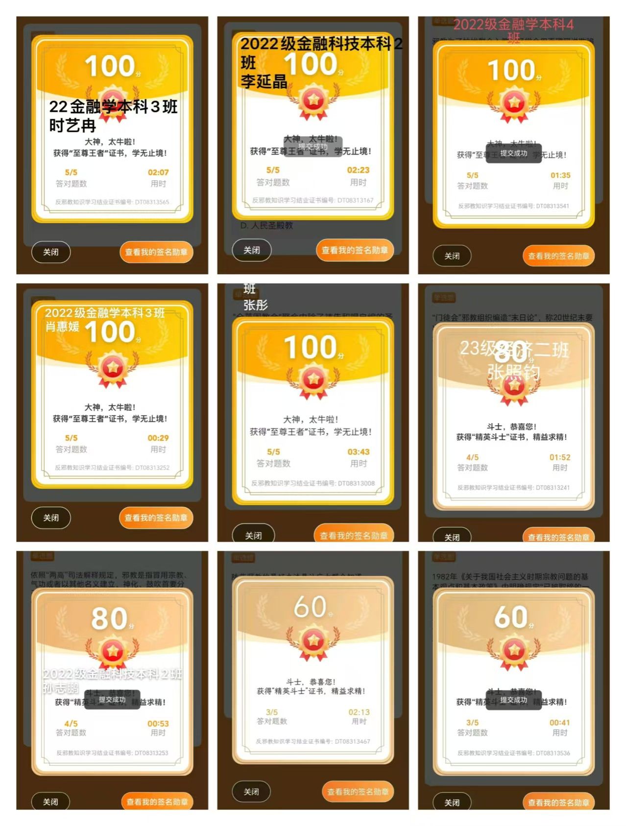 在本次活动中,同学们积极参与,认真作答,并取得了优异的成绩。此次网上答题的方式也让同学们深入了解到邪教组织的表现形式、主要危害和防范手段,教育同学们不要被邪教组织的“宗教”外衣迷惑,要远离邪教、自觉抵制邪教,对邪教歪理邪说不听、不信、不传。