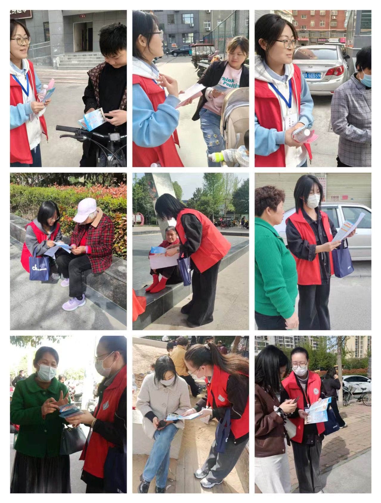 当天中午,反邪教协会志愿者抵达社区广场,进行本次活动。活动现场,志愿者沿着街道对路人和附近的商户发放反邪宣传单,科普反邪常识,讲解邪教案例。
