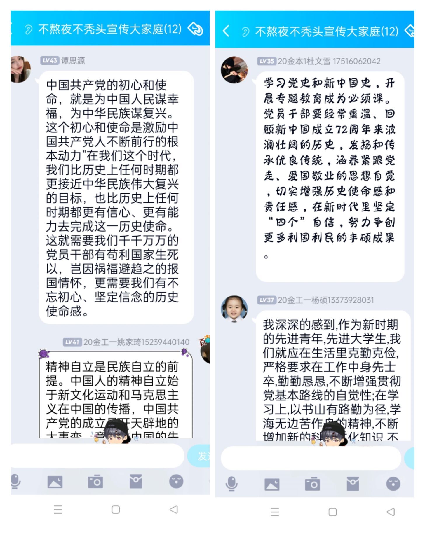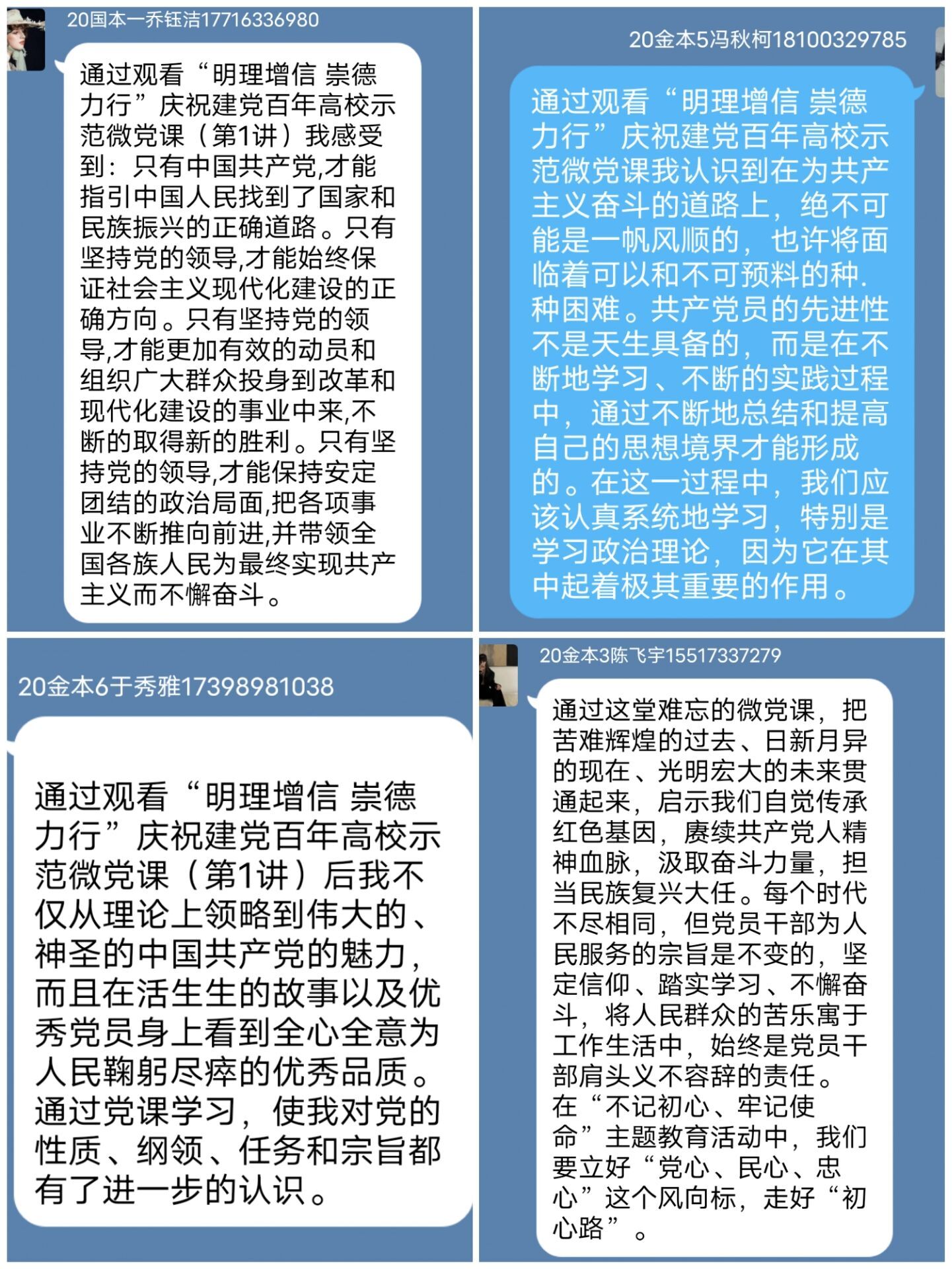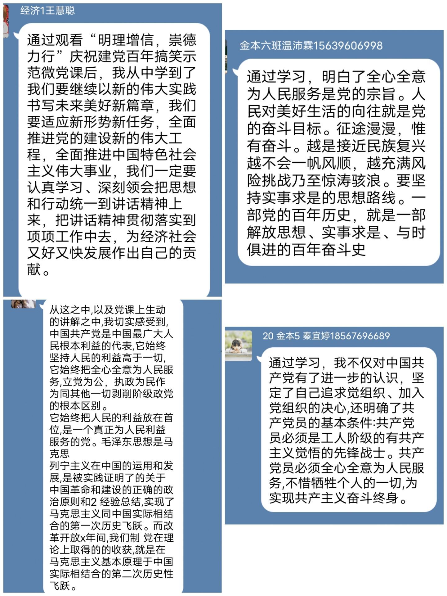 20级金本六班温沛霖说:“人民对美好生活的向往就是党的奋斗目标。征途漫漫,惟有奋斗。越是接近民族复兴越不会一帆风顺,越充满风险挑战乃至惊涛骇浪。要坚持实事求是的思想路线。”