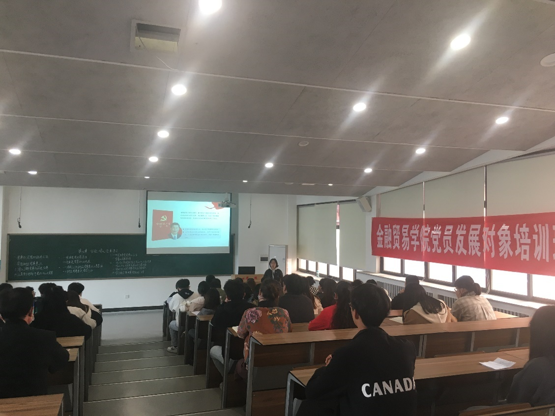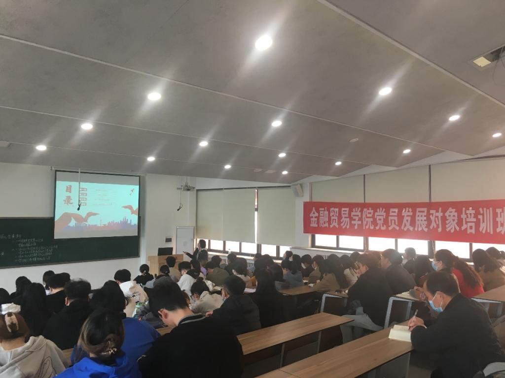 11月17日,金贸学院第十四期党员发展对象培训班第六讲在教学3号楼210教室举行。金贸学院党委委员、金融学教研室党支部书记杨毅以“全面深化党章学习”为主题教授党课。来自金融贸易学院、学务处、创新创业教育学院的76名师生党员发展对象参加了本次培训。