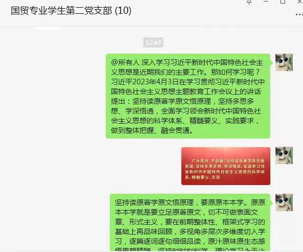 为深入学习领会习近平新时代中国特色社会主义思想,汲取政治营养。7月12日,支部开展了“读原著学原文悟原理”读书活动,在线上开展读书分享会。党支部全体成员参与活动。