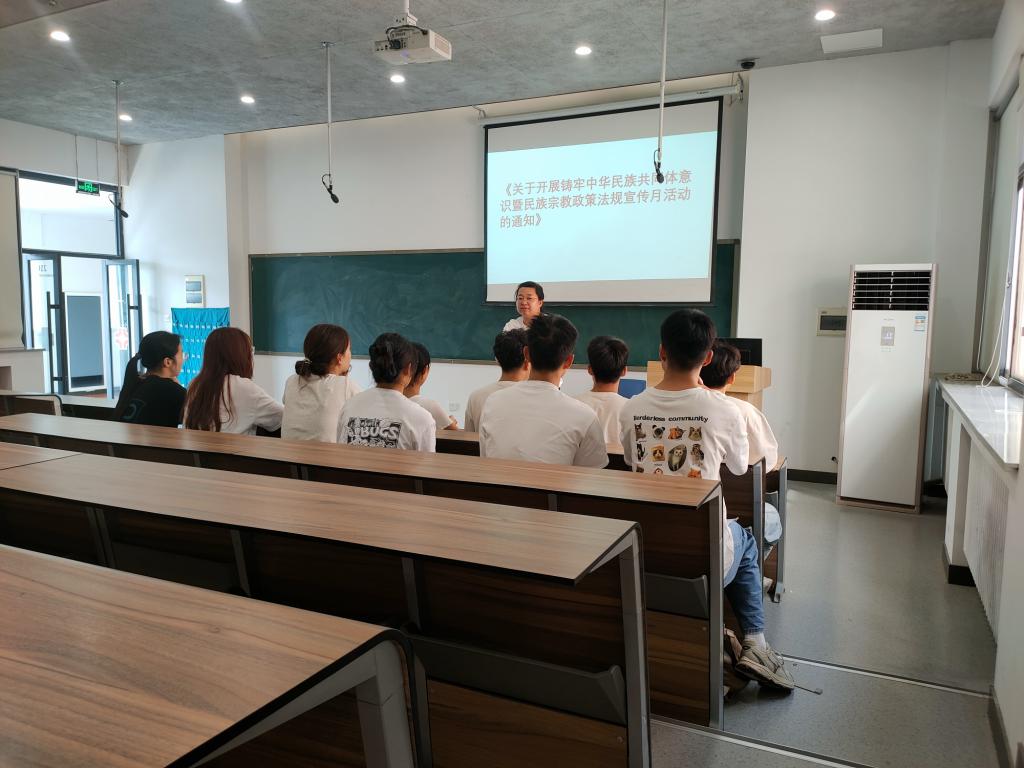 为深入学习贯彻习近平总书记关于加强和改进民族工作的重要思想、关于宗教工作的重要论述,9月18日,国贸专业学生第二党支部开展铸牢中华民族共同体意识暨民族宗教政策法规主题党日活动。