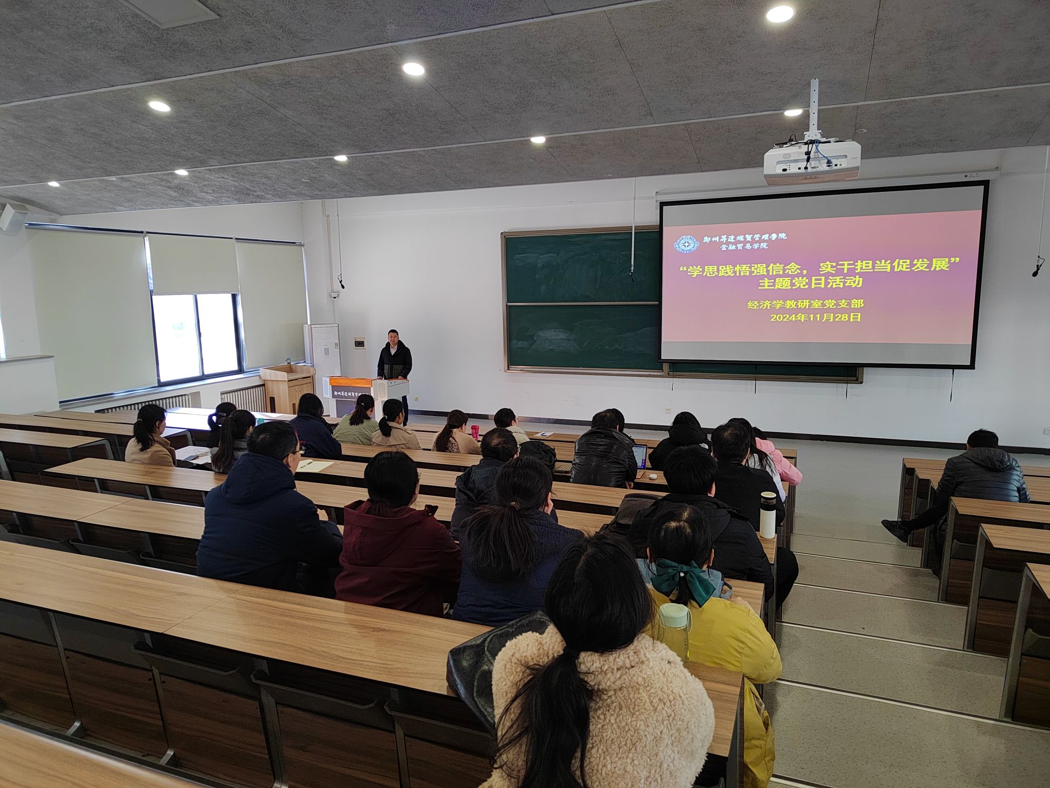 11月28日,经济学教研室党支部开展“学思践悟强信念、实干担当促发展”的主题党日活动,并结合第33个全国消防日进行了消防宣传主题教育。党支部书记刘合群同志担任主持人。