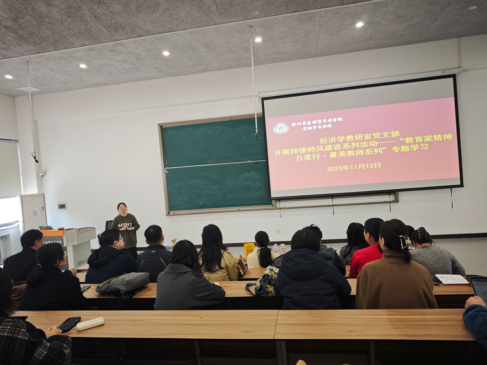 11月13日,经济学教研室党支部于3号楼107教室组织开展“教育家精神万里行·最美教师系列”专题学习活动。会议由支部书记徐娜娜同志主持,支部全体党员教师参与了本次会议。
