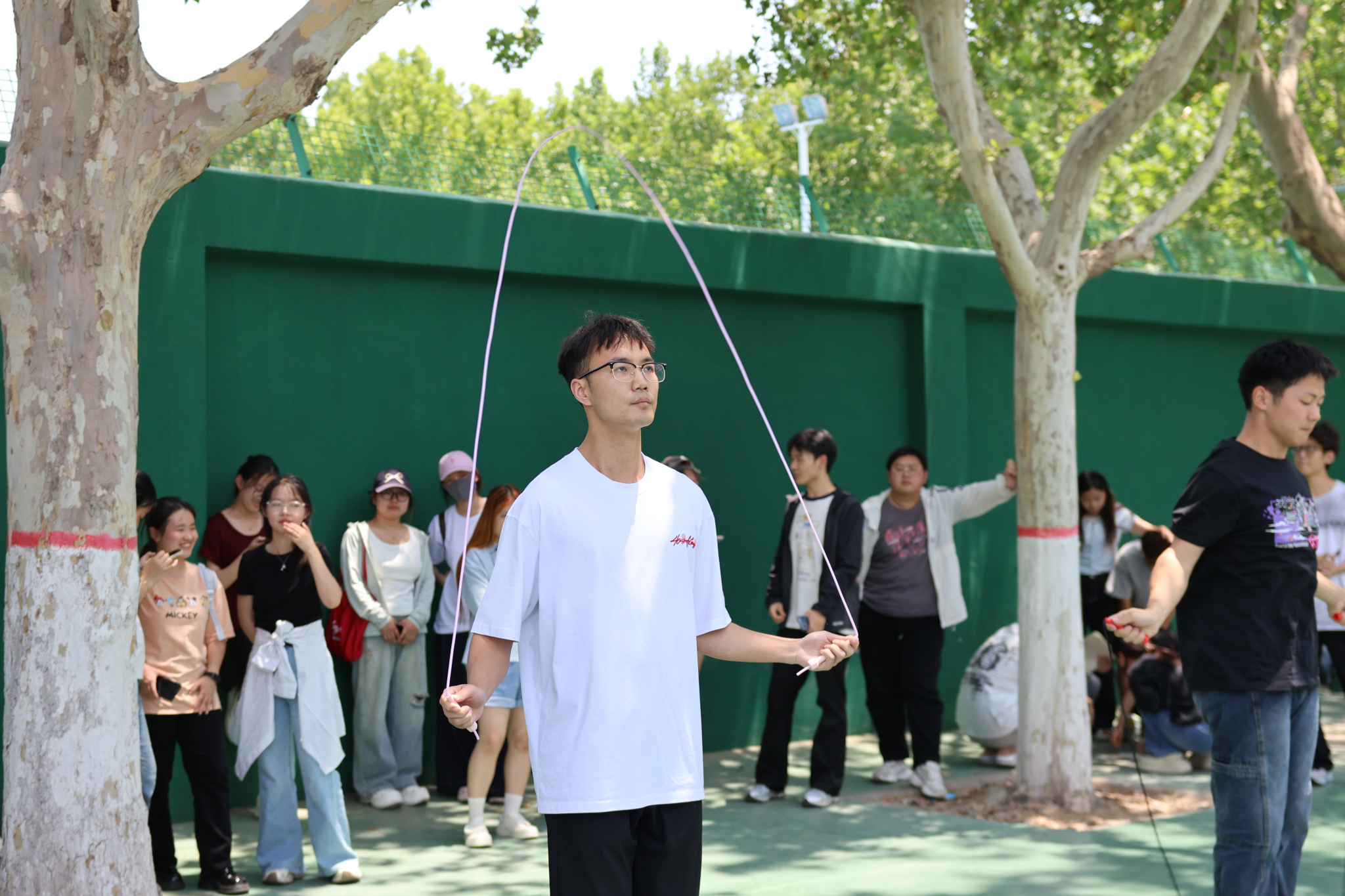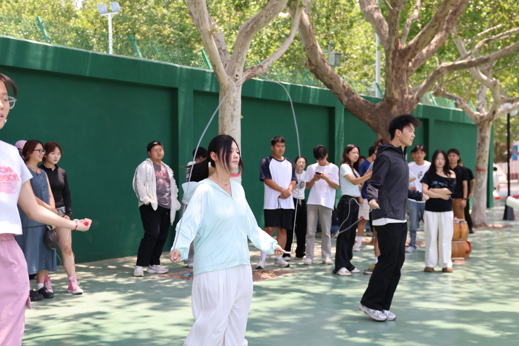 活动现场热情洋溢,丰富多彩的项目展现了体育运动的魅力。跳绳环节不仅锻炼了同学们的耐力与协调能力,还激发了大家的团队合作精神。蒙眼击鼓项目则挑战了同学们的感官体验与集中力,增强了他们的自我控制能力和心理素质。在激烈的互动中,同学们纷纷表示,运动不仅可以强身健体,还能培养积极向上的心态和团结合作的精神,为日常学习生活增添了无限活力。