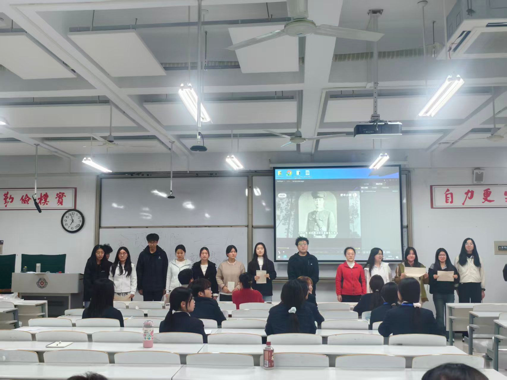 各班级参赛队伍精心筹备,以饱满热情投入表演,比赛现场,参赛队伍们通过精彩的表演,生动地再现了革命先烈的英雄事迹,如《晨光书社》、《曙光》等经典红色故事。观众被演员们投入的表演打动了,现场不时响起热烈的掌声。