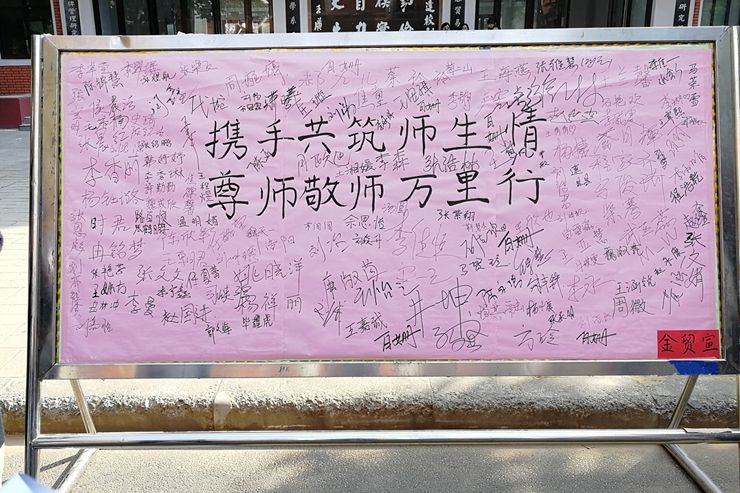 由金贸学院团委主办的2017年文明礼貌月系列活动之以“携手共筑师生情,尊师敬师万里行”为主题的签名活动在金贸学院领导及老师大力支持和团学会全体同仁的精心筹备下正式拉开帷幕。