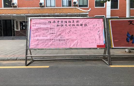 上午10点整,活动正式开始,同学们纷纷从教学楼赶来积极地参与签名活动。展板上的签名青春洋溢,这不仅是同学们对本次“文明礼貌月”活动的赞同与支持,更是像是对此次以传承中华文化,争做新时代青年的无声宣誓。