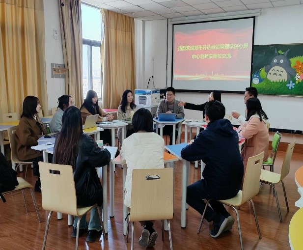 为进一步加强我校心理健康工作体系建设,推动心理健康教育工作专业化、规范化发展,3月20日,我校师生罗志懿、蔡艳丽等一行6人前往郑州财经学院心理健康教育与咨询中心交流参观,郑州财经学院心理健康教育与咨询中心主任石英华对我校教师来访表示热烈欢迎,并热情接待我校教师。石主任主持参观交流会并致欢迎词。随后,郑州财经学院张雪伟老师和卢梦歌老师分别详细介绍、分享了该校心理健康教育工作的管理体系,心理危机预防与...